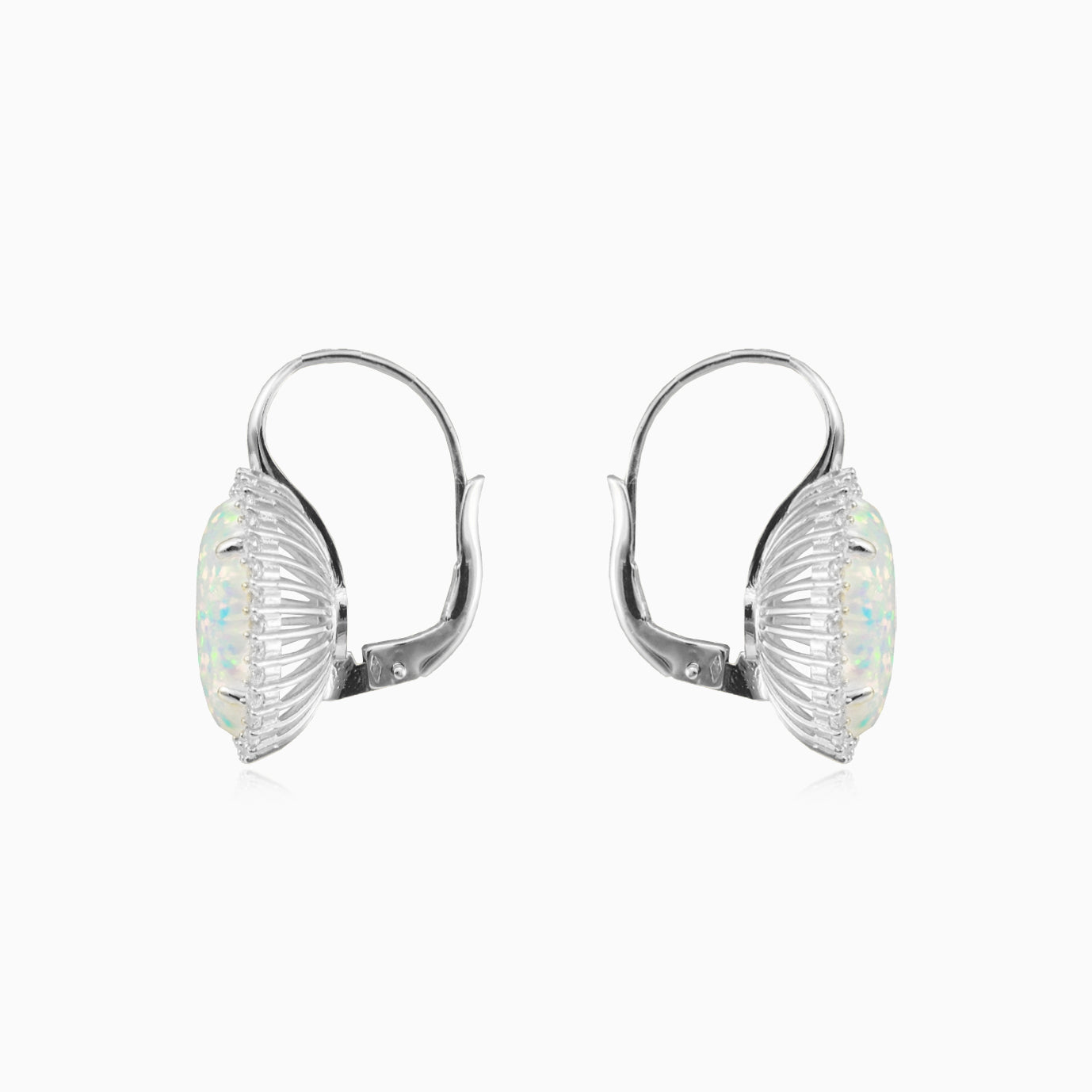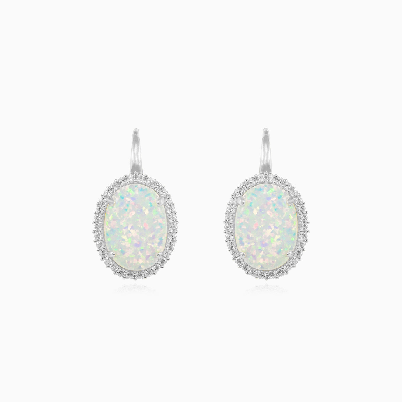 Boucles d'oreilles pendantes en opale blanche avec éclat royal