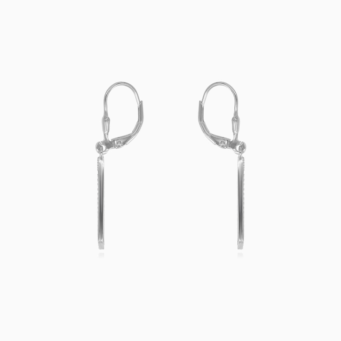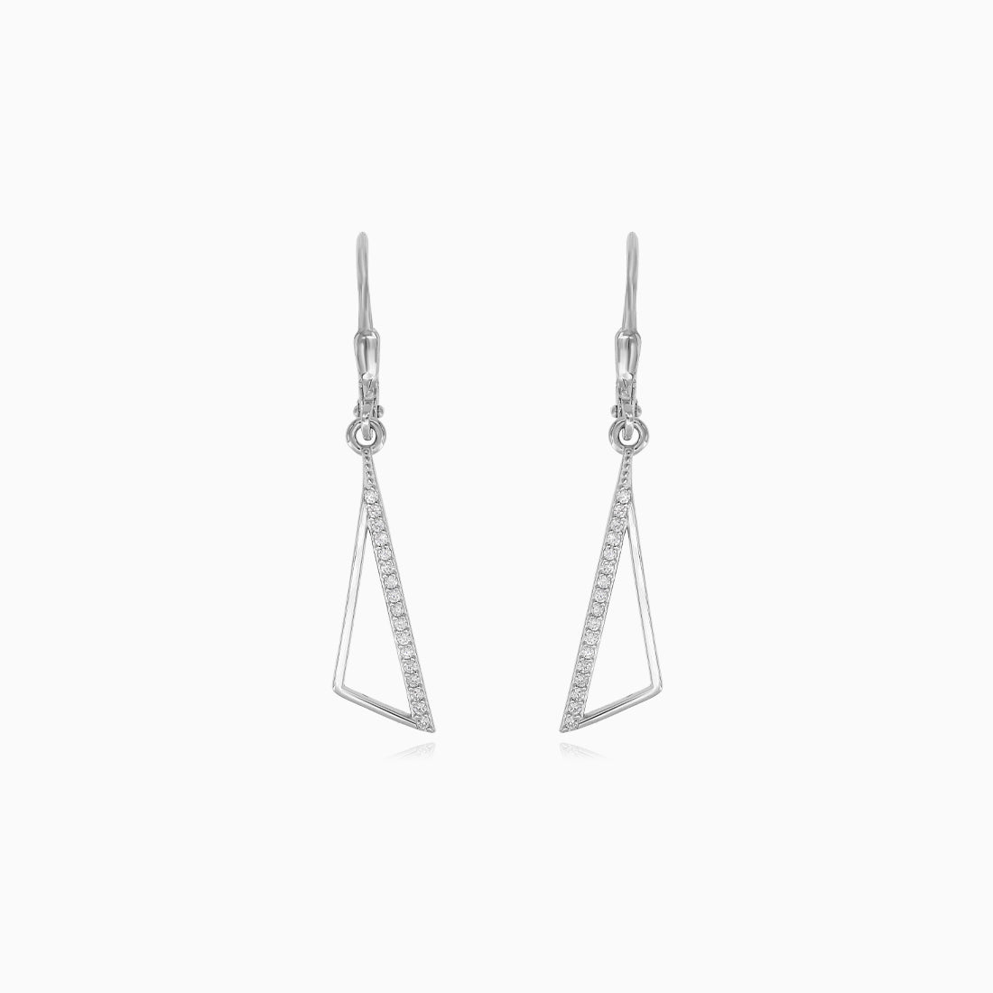 Ces magnifiques boucles d’oreilles en argent sterling présentent un design unique de triangle incurvé, apportant une touche moderne à votre collection de bijoux. Elles sont ornées de pierres de zircon cubique étincelantes, taille ronde fine à facettes, serties en griffes de manière sécurisée. Le fermoir à levier garantit un confort optimal, parfait pour toutes les occasions.