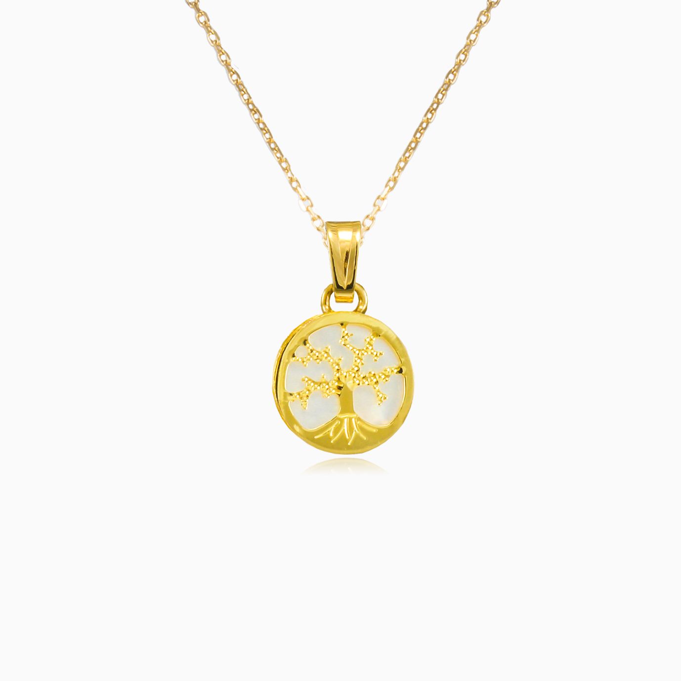 Pendentif unique arbre de vie en or jaune 14 carats pour collier, associé à de la nacre.