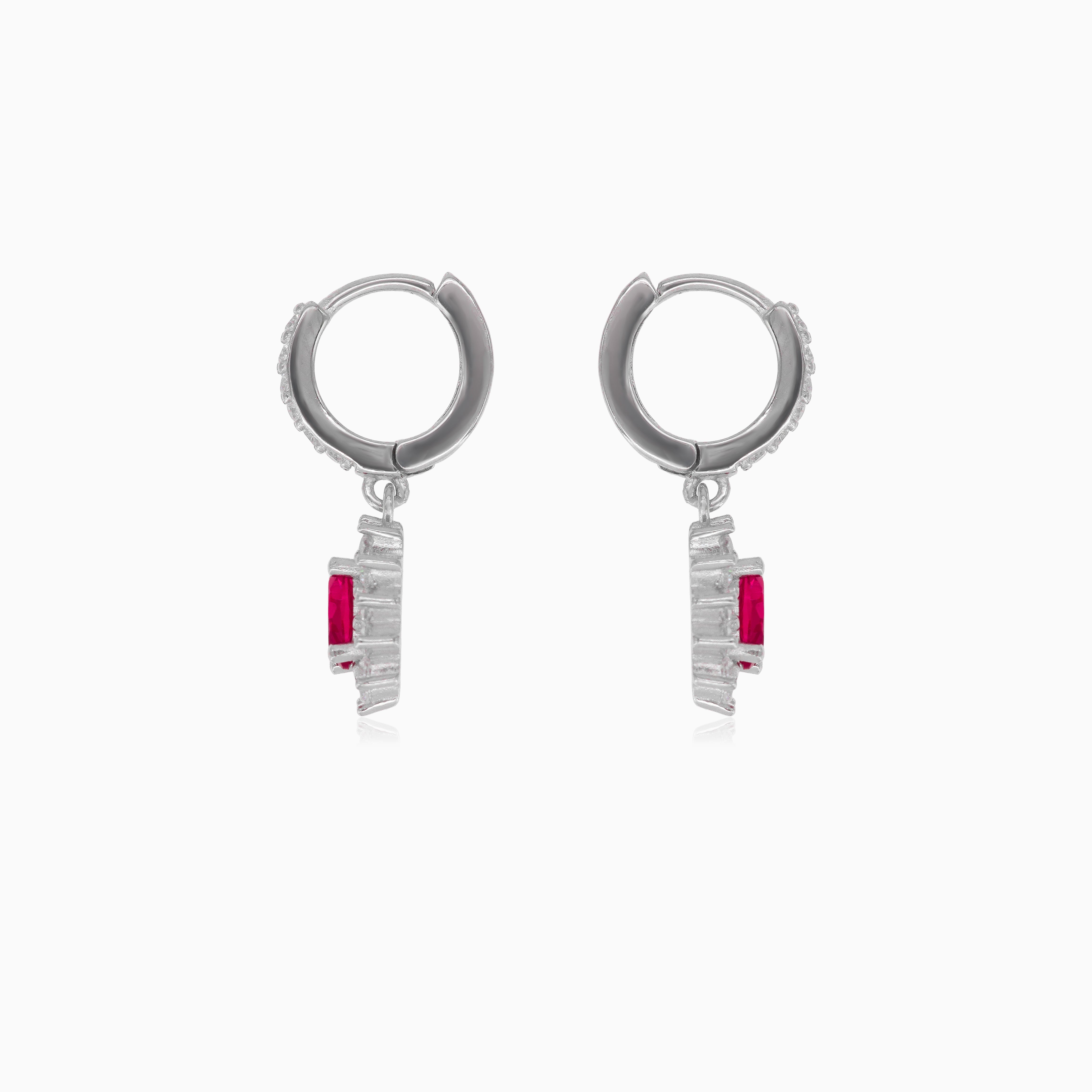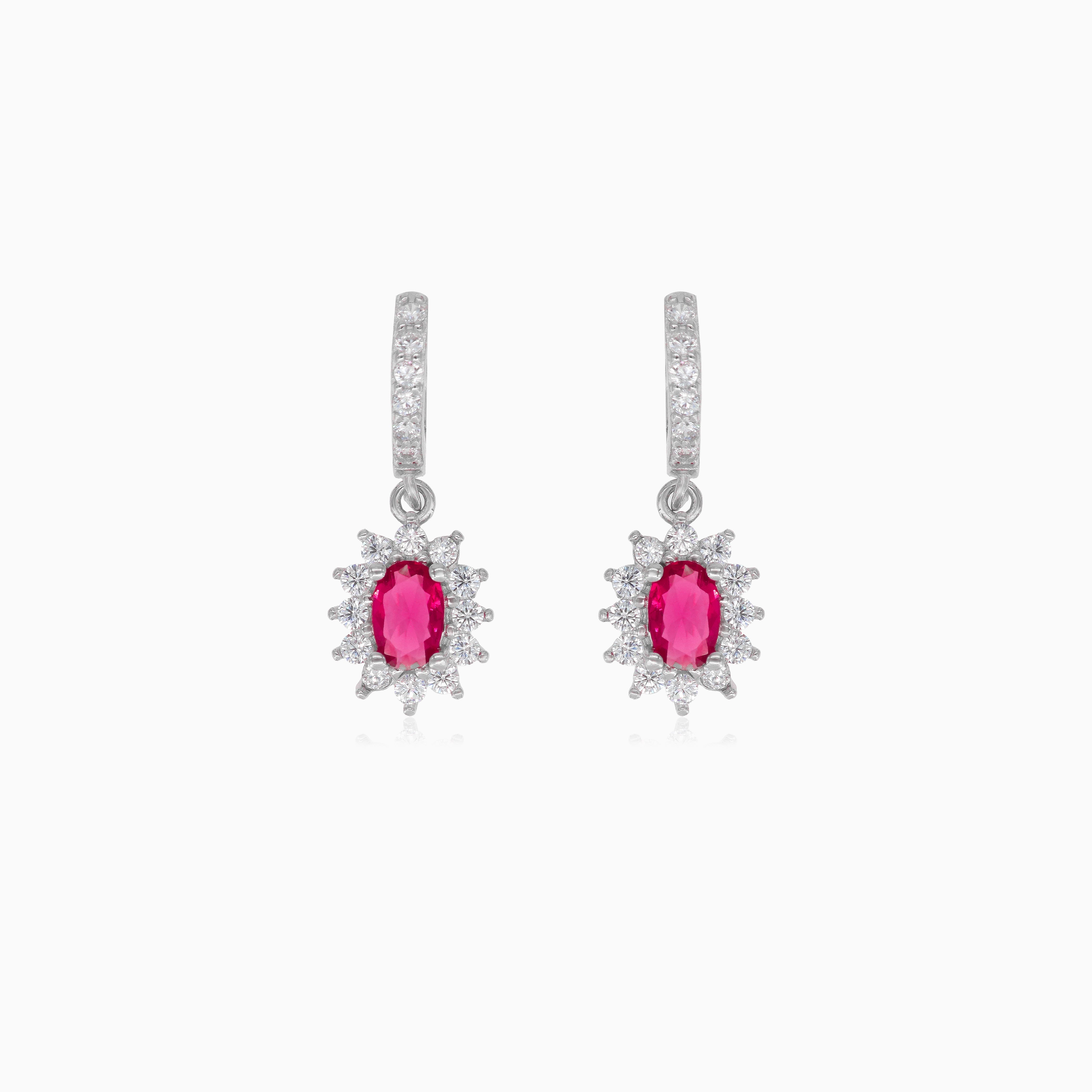 Boucles d’oreilles pendantes en argent halo avec rubis synthétique