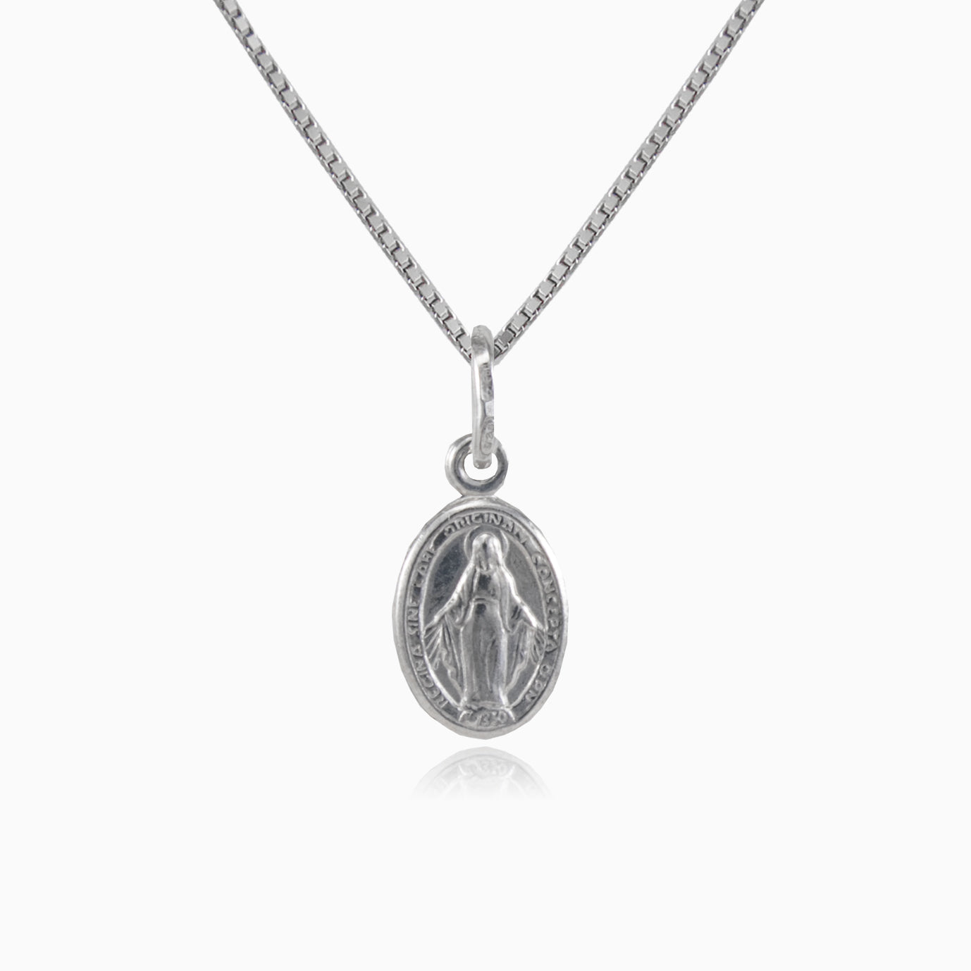 Ce pendentif pour femme en argent sterling présente une médaille détaillée de la Vierge Marie, symbolisant la foi et la dévotion. Conçu sans pierres, sa finition polie et son design significatif en font un accessoire religieux intemporel ou un cadeau attentionné.