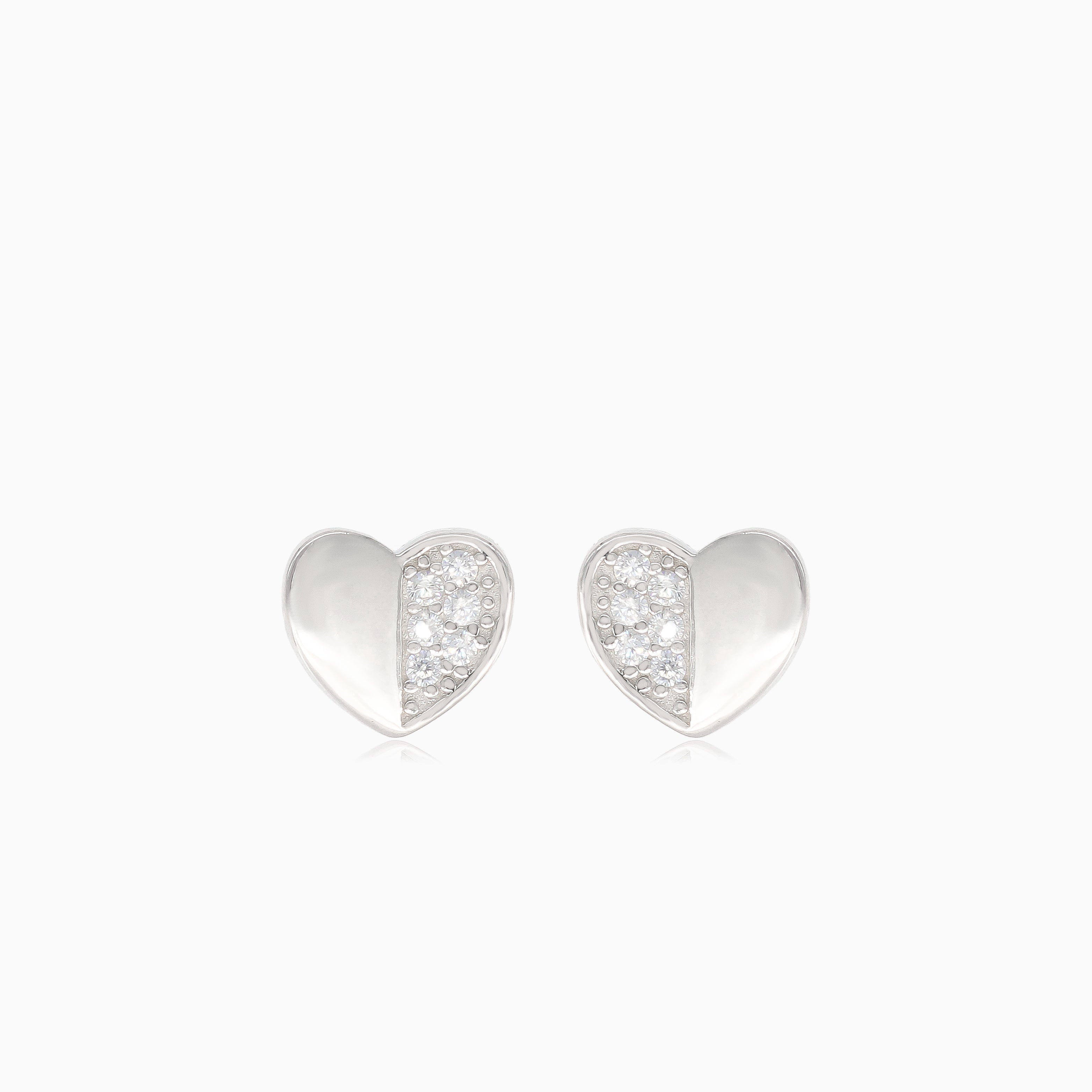 Boucles d’oreilles puces cœur en argent finement travaillées, présentant des zircons cubiques semi-sertis, parfaites pour femmes et enfants.