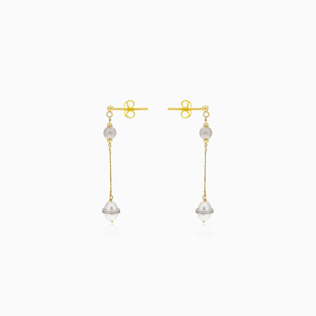 Boucles d’oreilles pendantes en chaîne en or avec perles