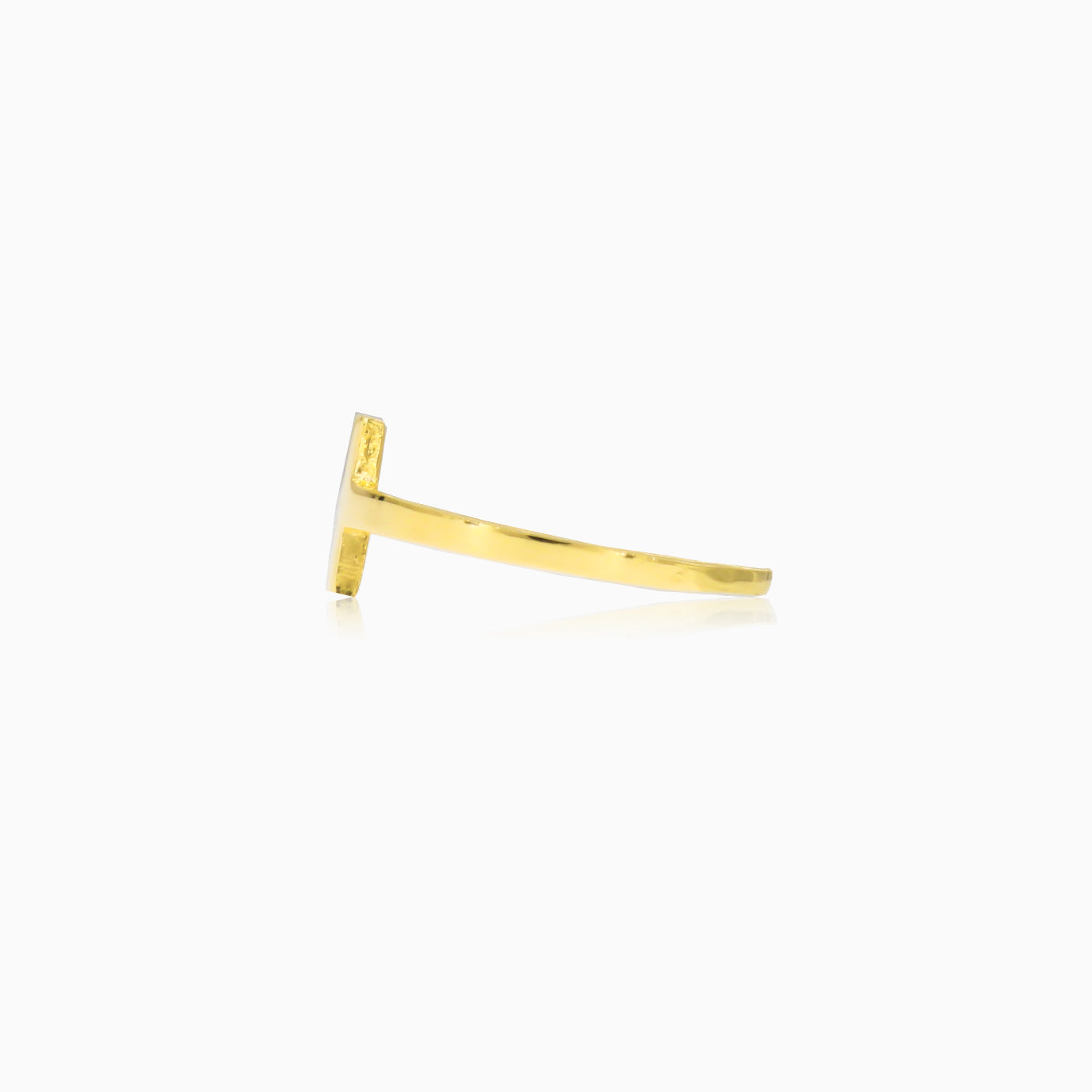 Cette bague simple et élégante en or jaune 14 carats présente un symbole de croix avec une finition haute brillance.