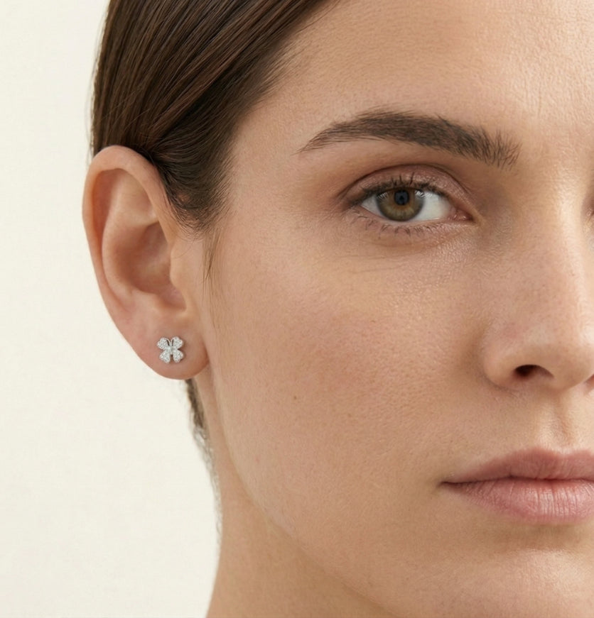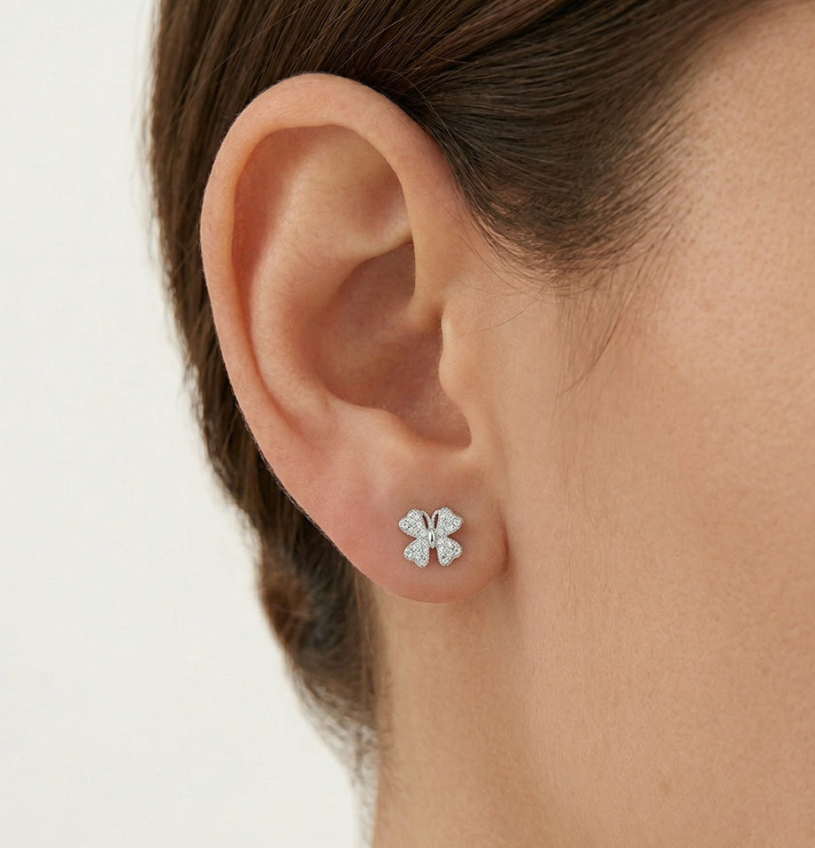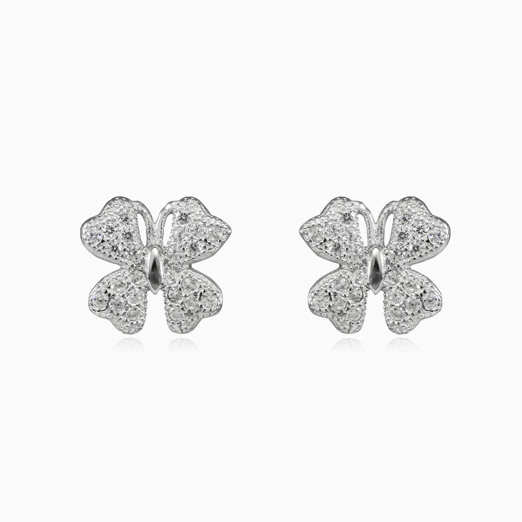 Boucles d'oreilles puces en forme de papillon, en argent sterling, décorées de zirconium cubiques.