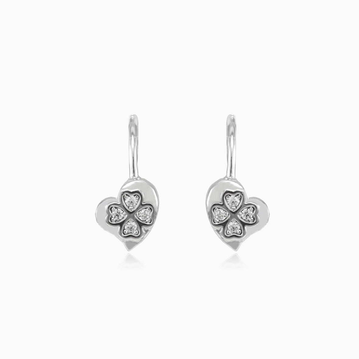 Boucles d’oreilles en argent sterling en forme de cœur, décorées d’un trèfle en zircone cubique.