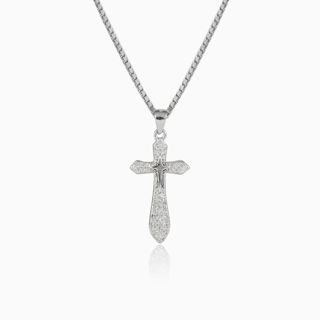 Croix épée magnifiquement sculptée en argent sterling, ornée de zirconiums cubiques sertis en micro-pavé.