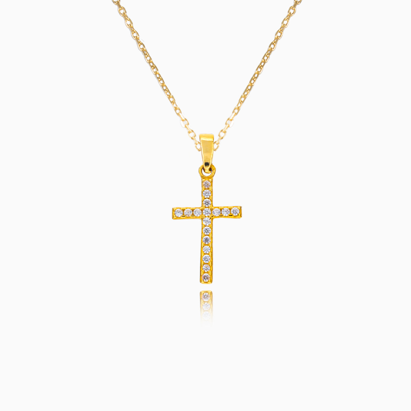 Ce petit pendentif croix double face est fabriqué en or jaune 14 carats, avec du zirconium d’un côté et de l’onyx de l’autre, créant une pièce unique et polyvalente.