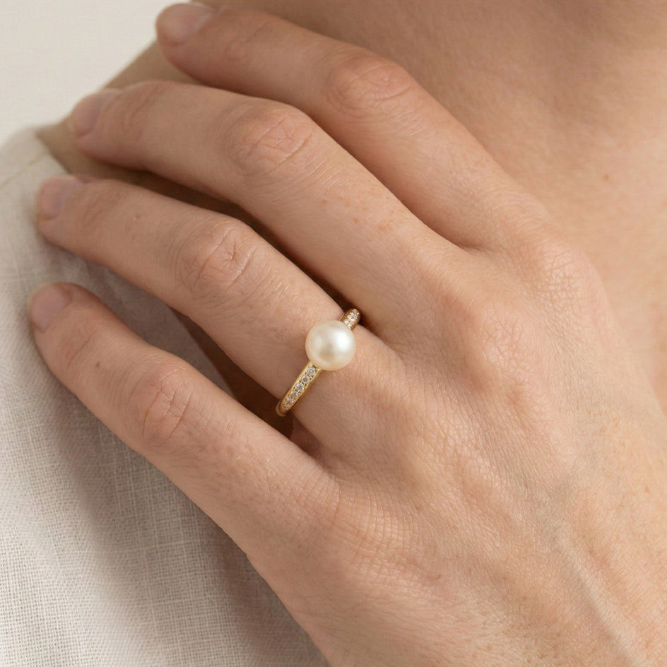 Bague en or avec zircon cubique et perle