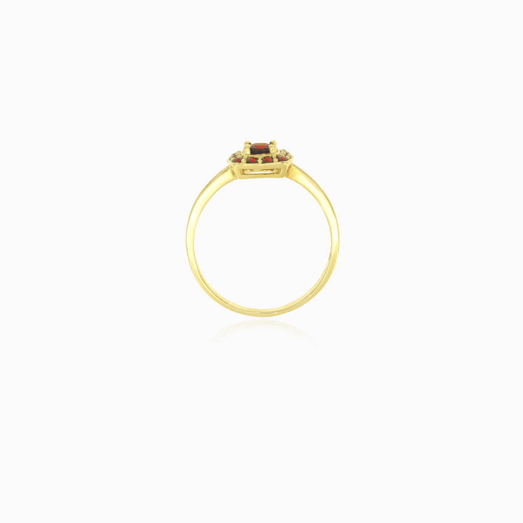 Bague en or jaune avec grenat rond.
