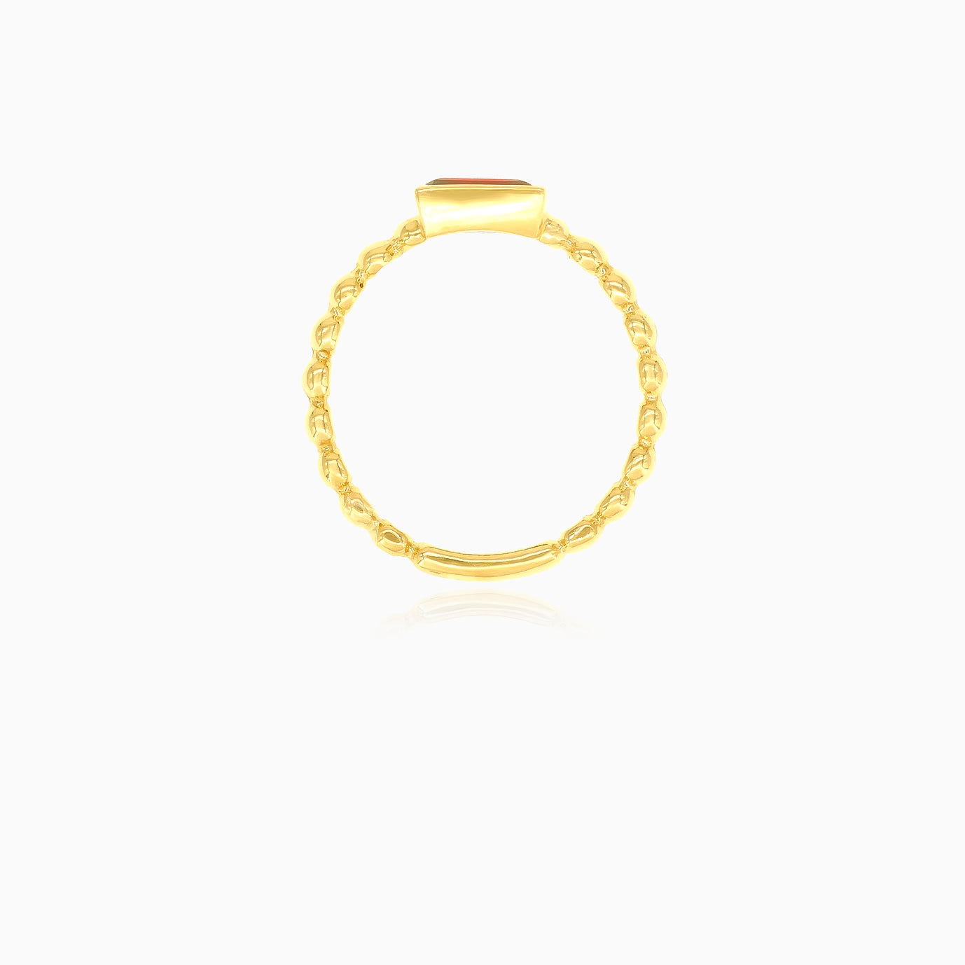 Fabriquée en or jaune 14 carats, cette magnifique bague pour femme présente un grenat rouge profond taille émeraude dans un sertissage clos épuré. Les lignes nettes de la taille émeraude sont sublimées par la bande lisse en or, créant un look intemporel et élégant, parfait pour toute collection de bijoux.