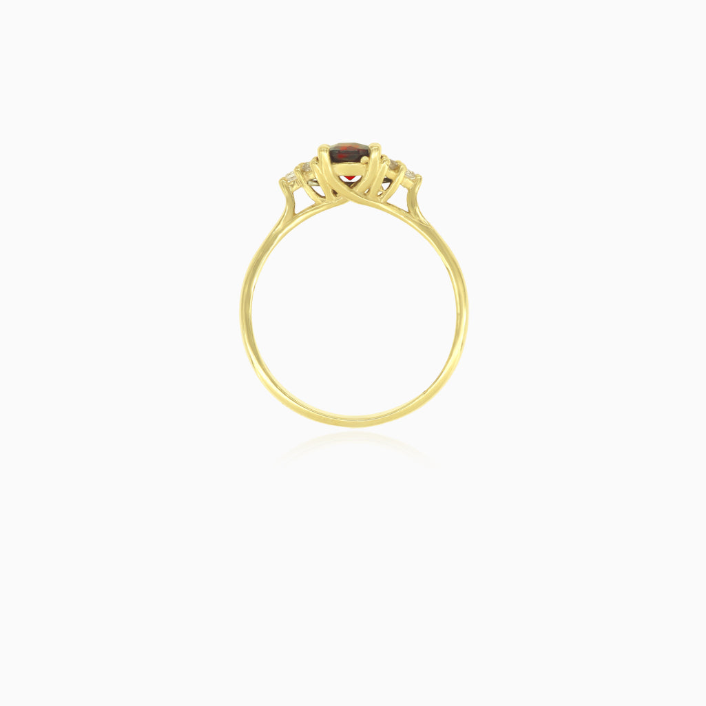 Cette élégante bague pour femme est réalisée en or jaune 14 carats et met en valeur une superbe combinaison de grenat taillé en rond à degrés fins et de pierres en zircon cubique. Le sertissage griffes rehausse l’éclat des gemmes, faisant de cette pièce un choix parfait pour celles qui apprécient un design sobre et élégant.