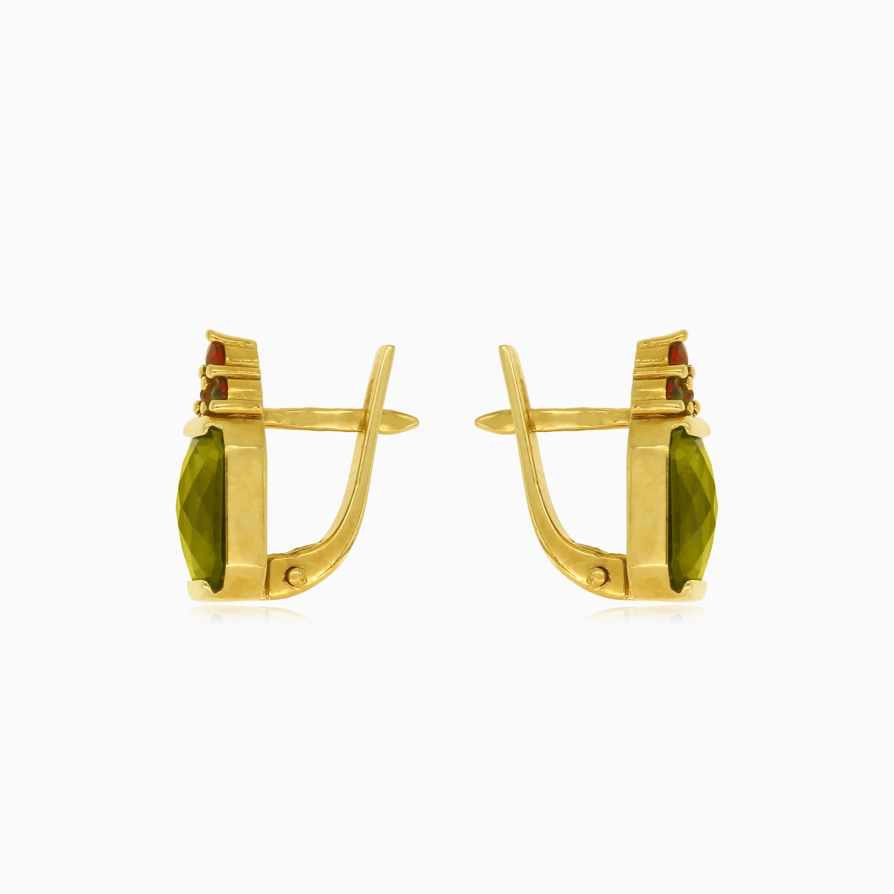 Boucles d’oreilles en or avec grenat et moldavite rayonnants