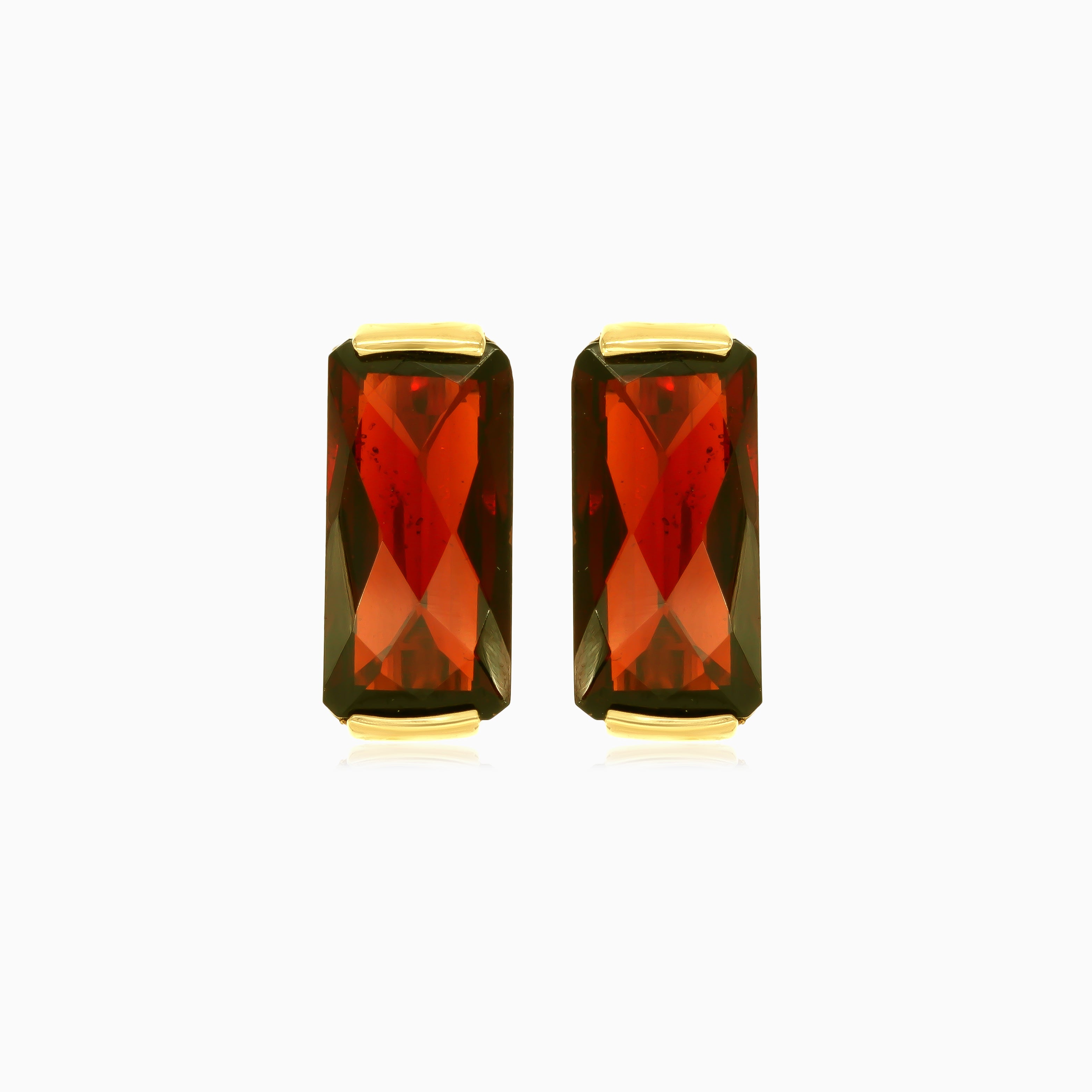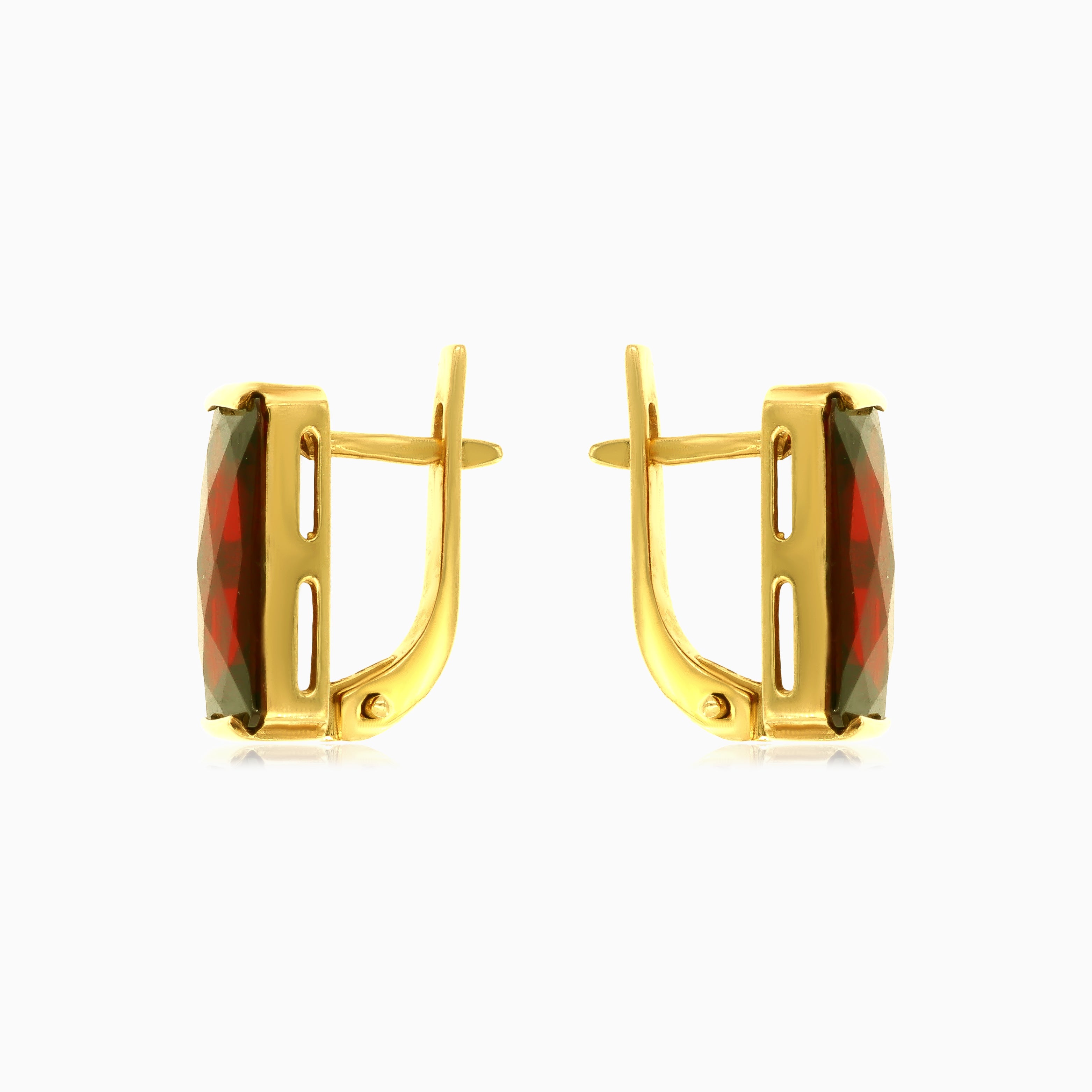 Illuminez votre look avec notre élégance éclatante – boucles d’oreilles grappes en or jaune 14 carats, ornées de grenat taille radiant rectangulaire. Le sertissage barre et le fermoir à cliquet sécurisé ajoutent une touche de sophistication, faisant de ces boucles un parfait mélange de charme intemporel et de style contemporain.