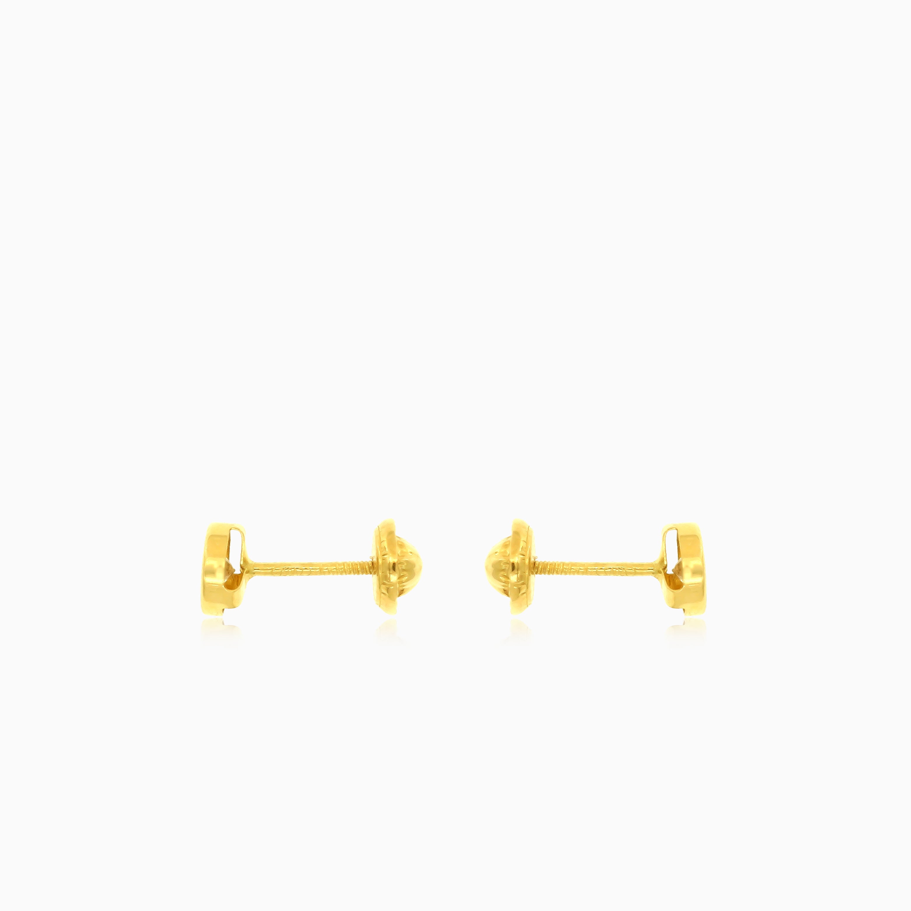 Les magnifiques boucles d’oreilles puces Bambine en or, ornées de zircon cubique brillant en serti clos, présentent une taille ronde fine taille pas à pas, serties en or jaune 18 carats avec un fermoir à vis sécurisé.