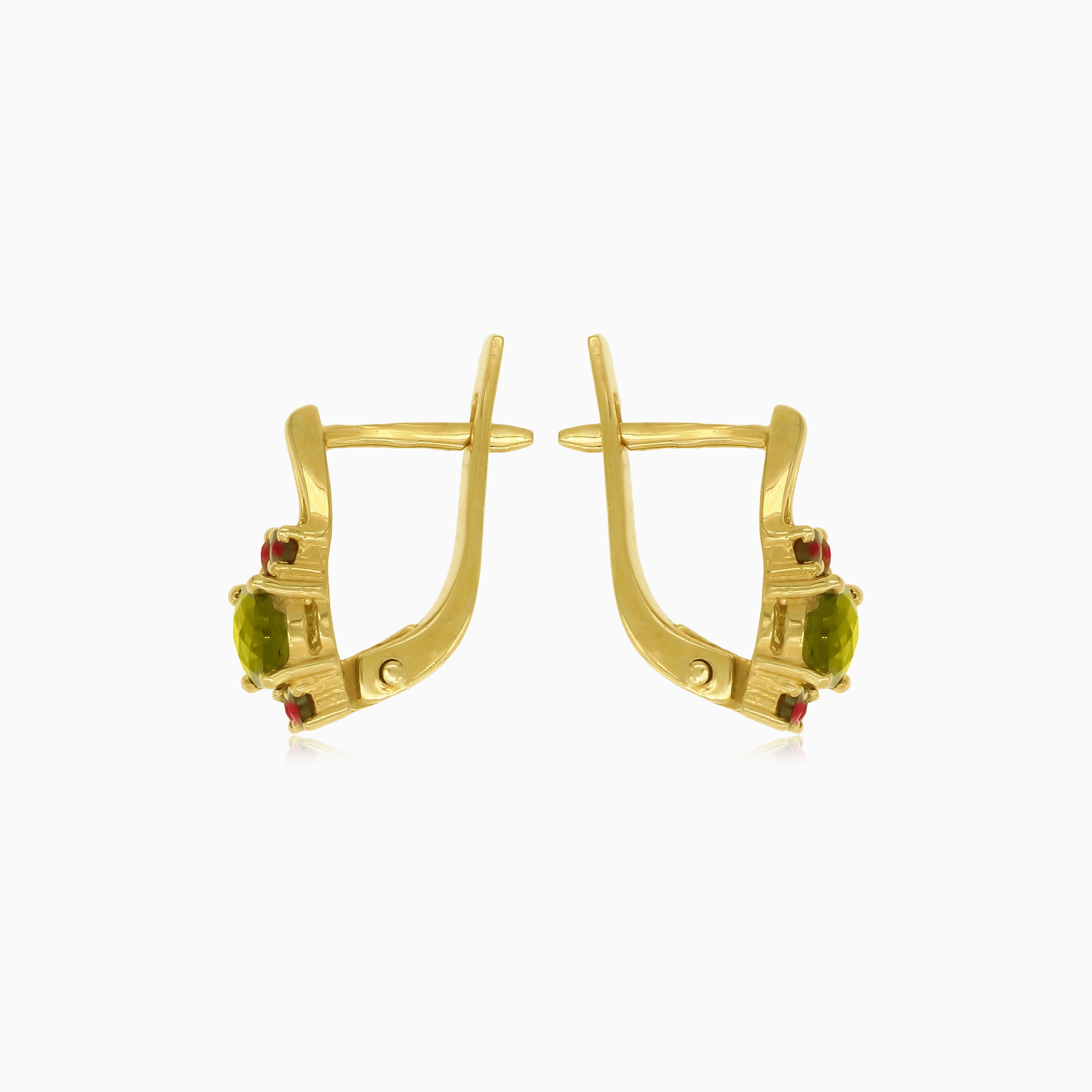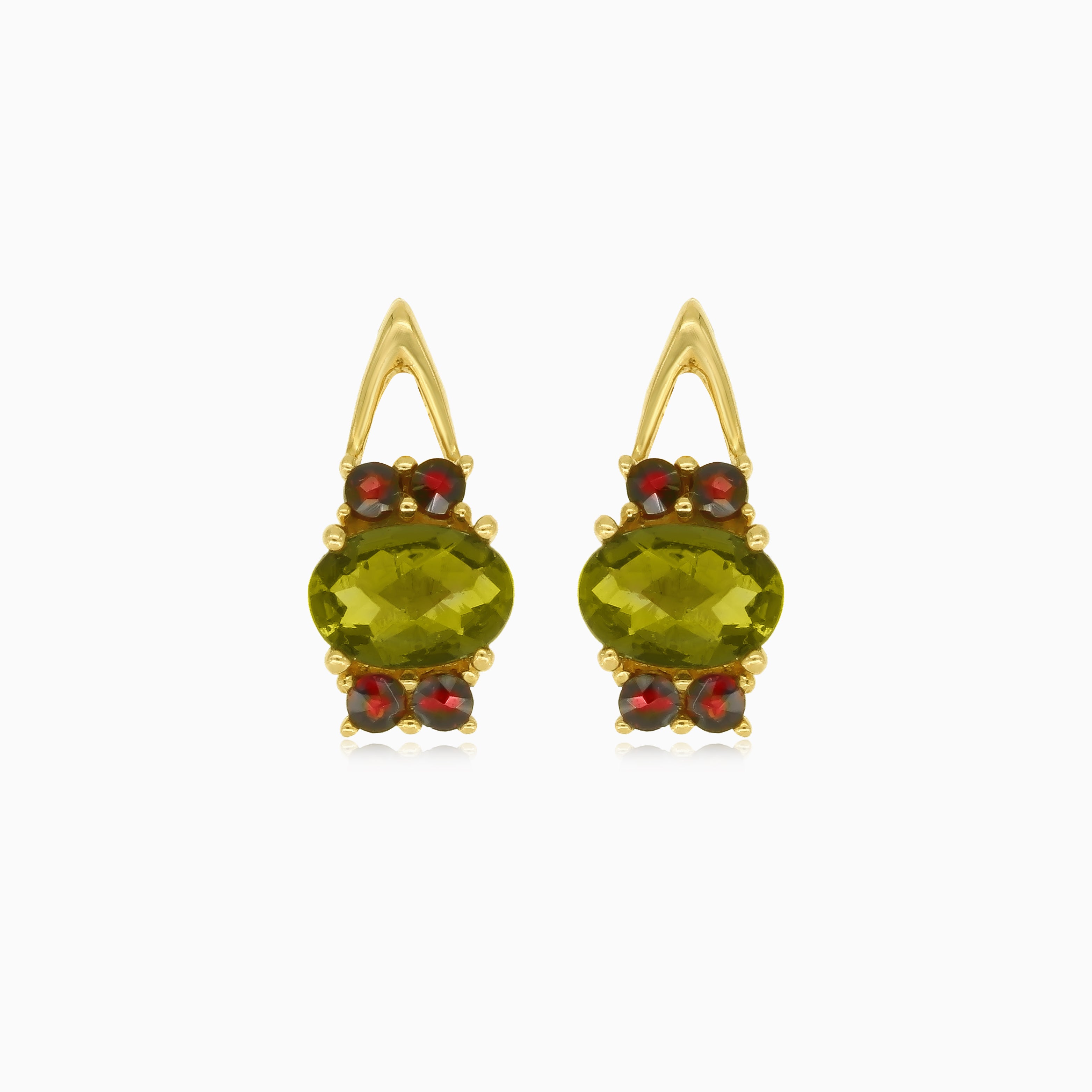 Boucles d'oreilles en or 14 carats, grenat et moldavite intemporelles