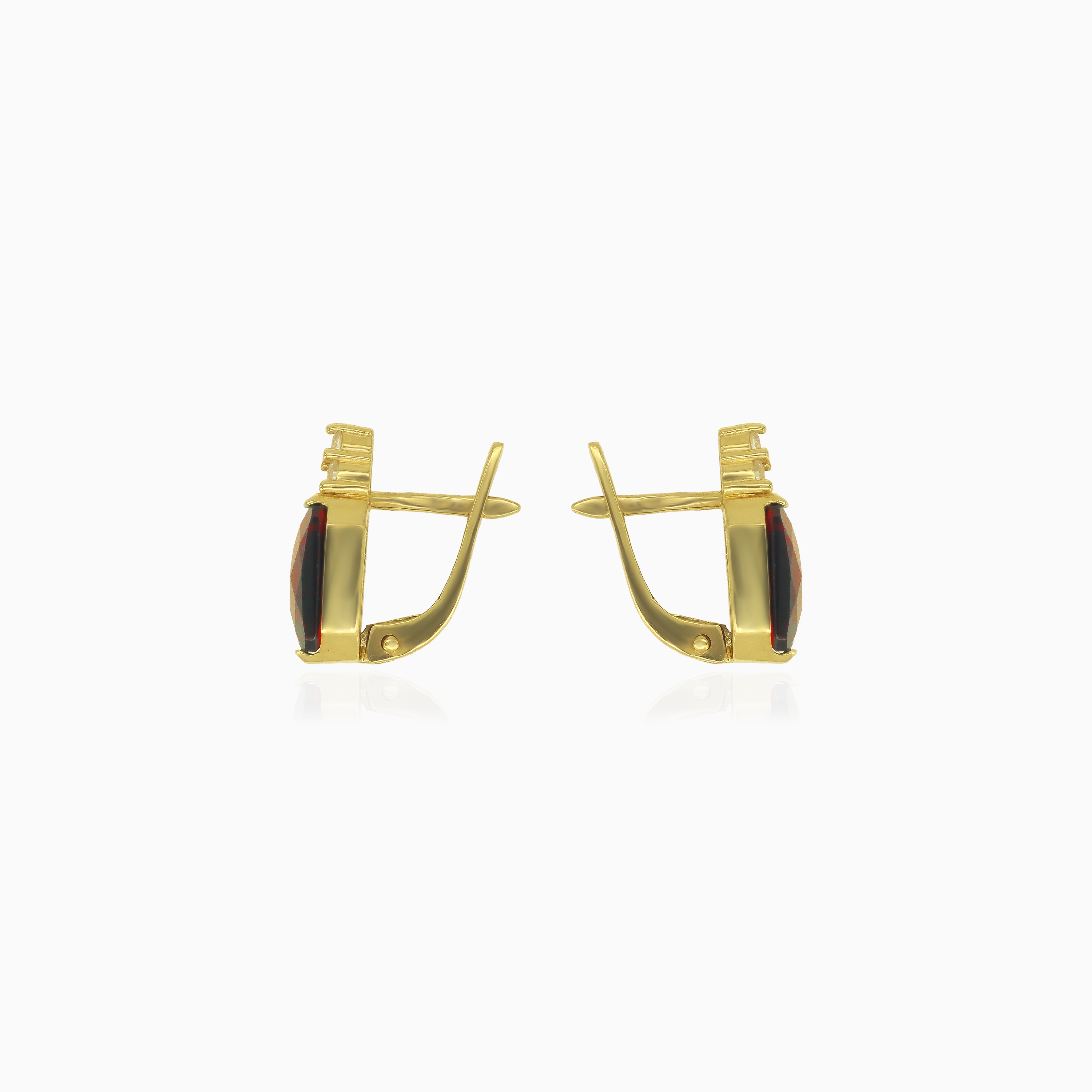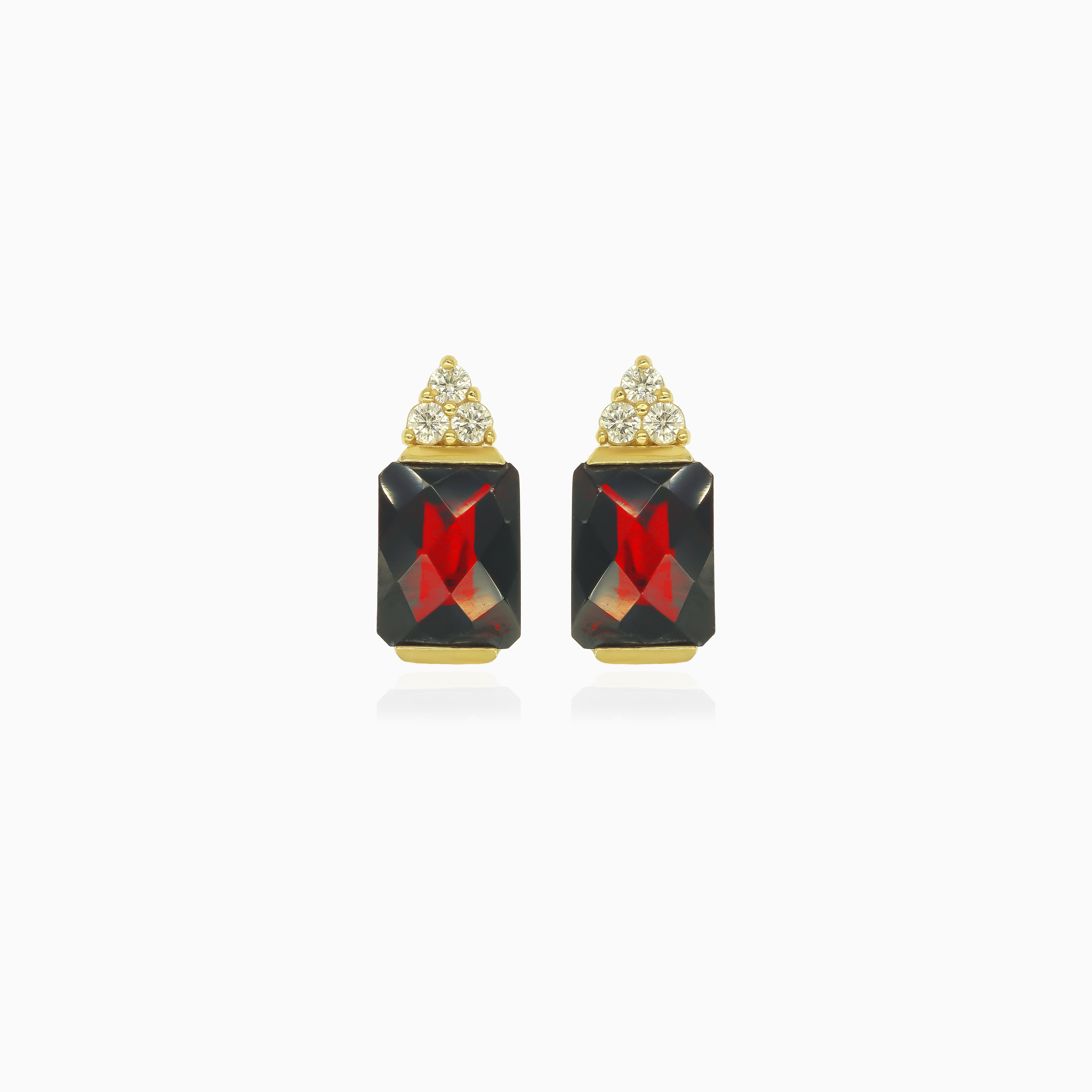 Boucles d’oreilles élégantes avec grenat taille émeraude et zircon cubique
