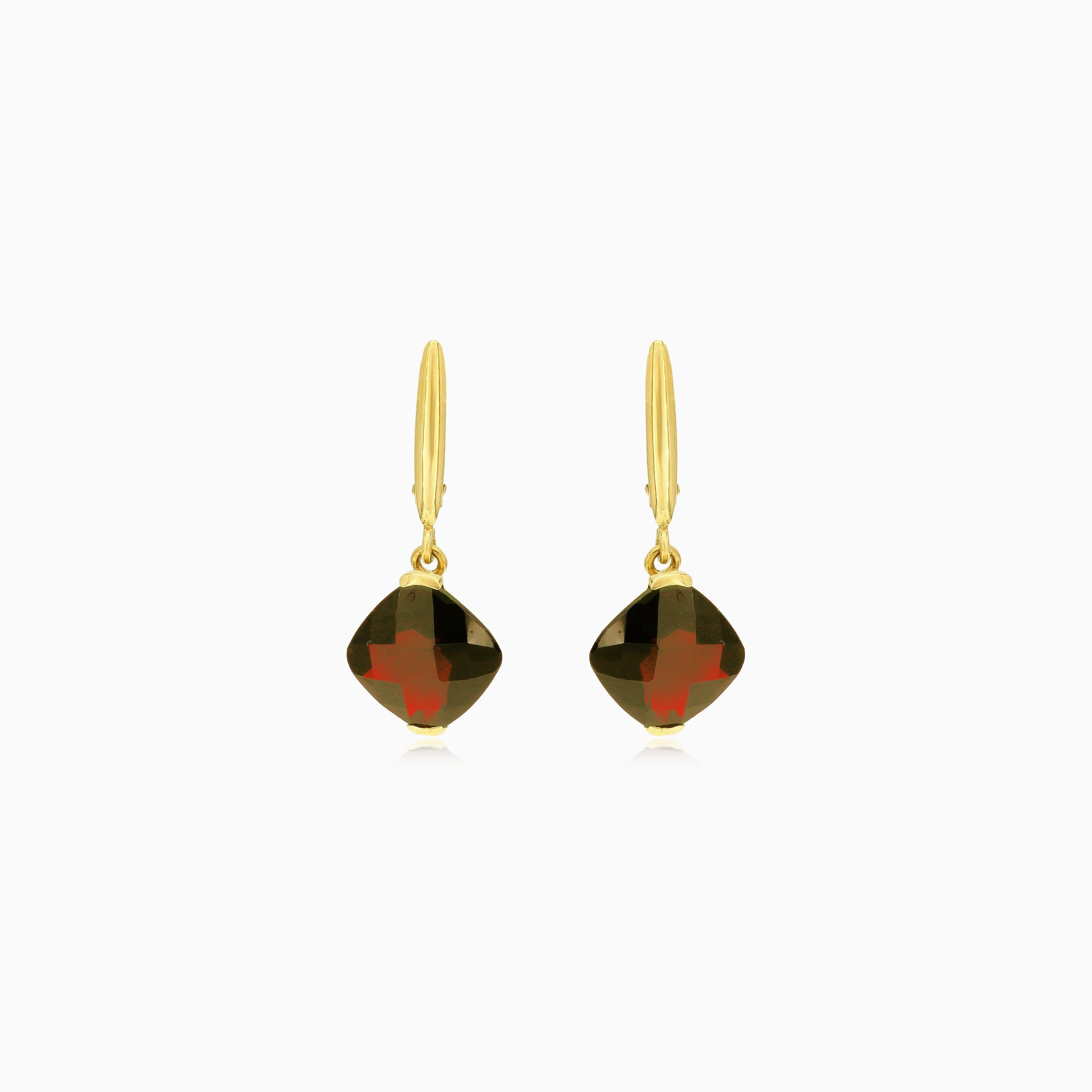 Boucles d’oreilles grenat coussin taille fine à degrés en or