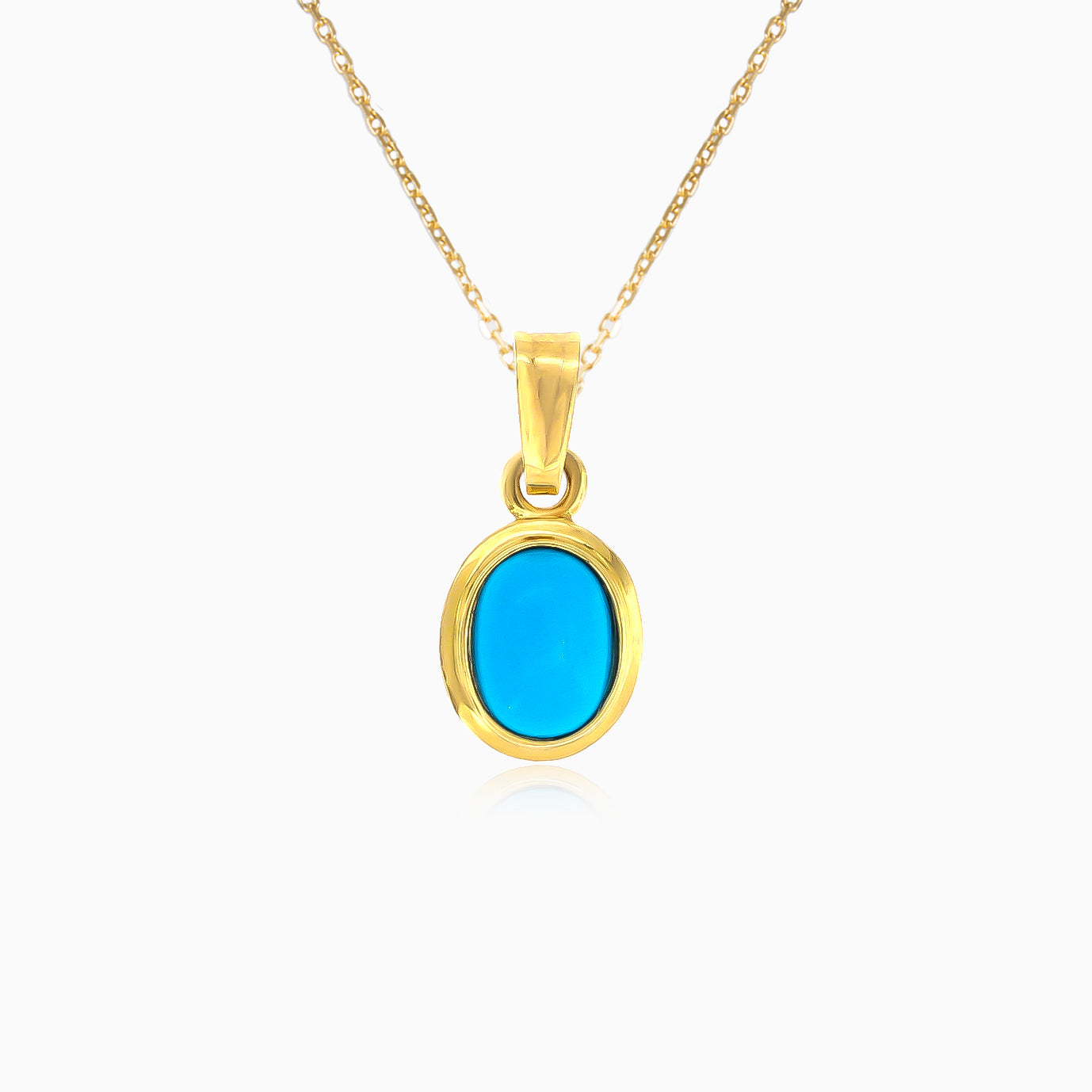 Captivez avec un pendentif femme en or 14 carats, orné d’une turquoise taille ovale saisissante, sublimée par une taille ronde fine pour une élégance intemporelle.