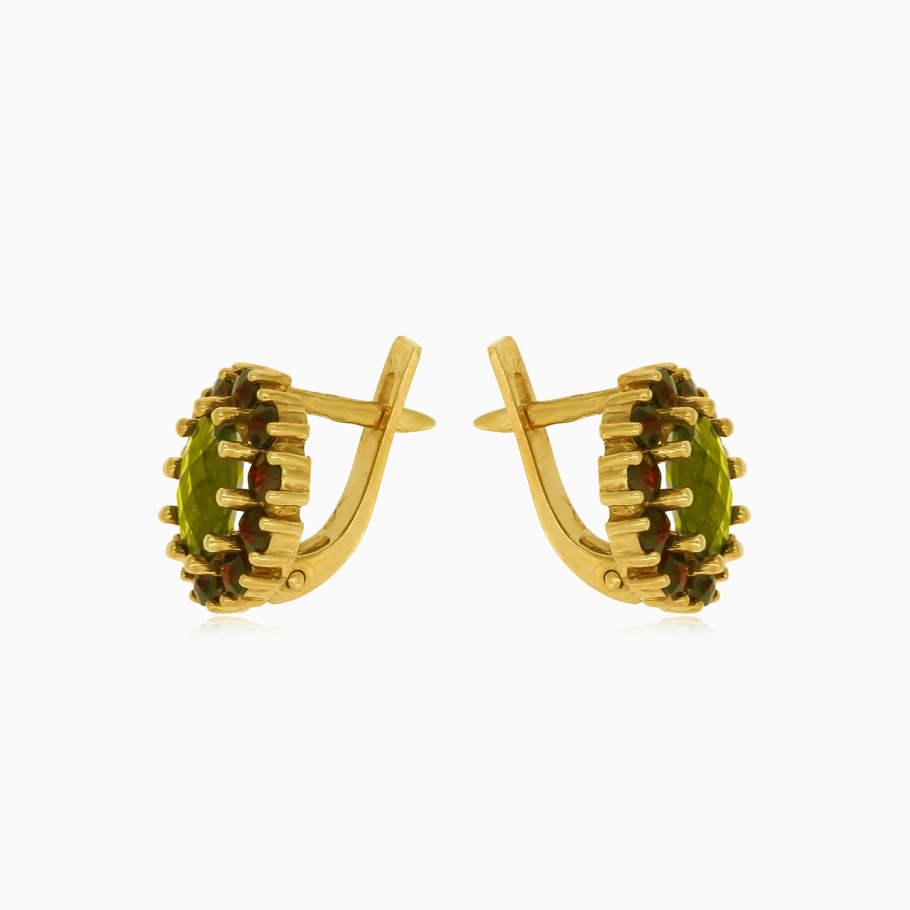 Adoptez la beauté botanique de ces boucles d'oreilles royales, ornées de moldavite en taille ovale fine et de grenat en taille ronde fine. Le sertissage à griffes partagé en or jaune 14K garantit un ajustement sécurisé et élégant, complété par un fermoir délicat à crochet. Sublimez votre style avec cette paire exquise inspirée de la flore.