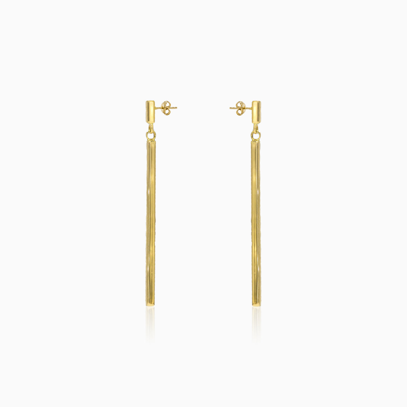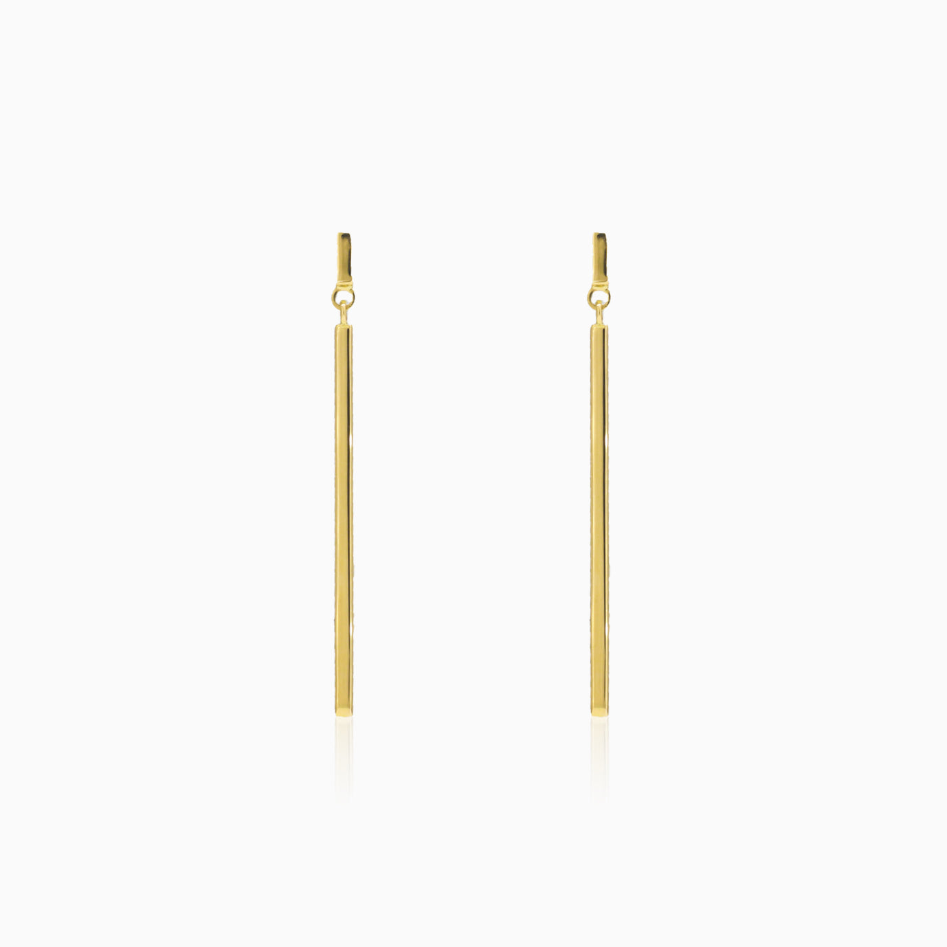 Rehaussez votre style avec ces boucles d’oreilles longues géométriques pendantes en or jaune 14 carats. Un mélange parfait d’élégance et de modernité.