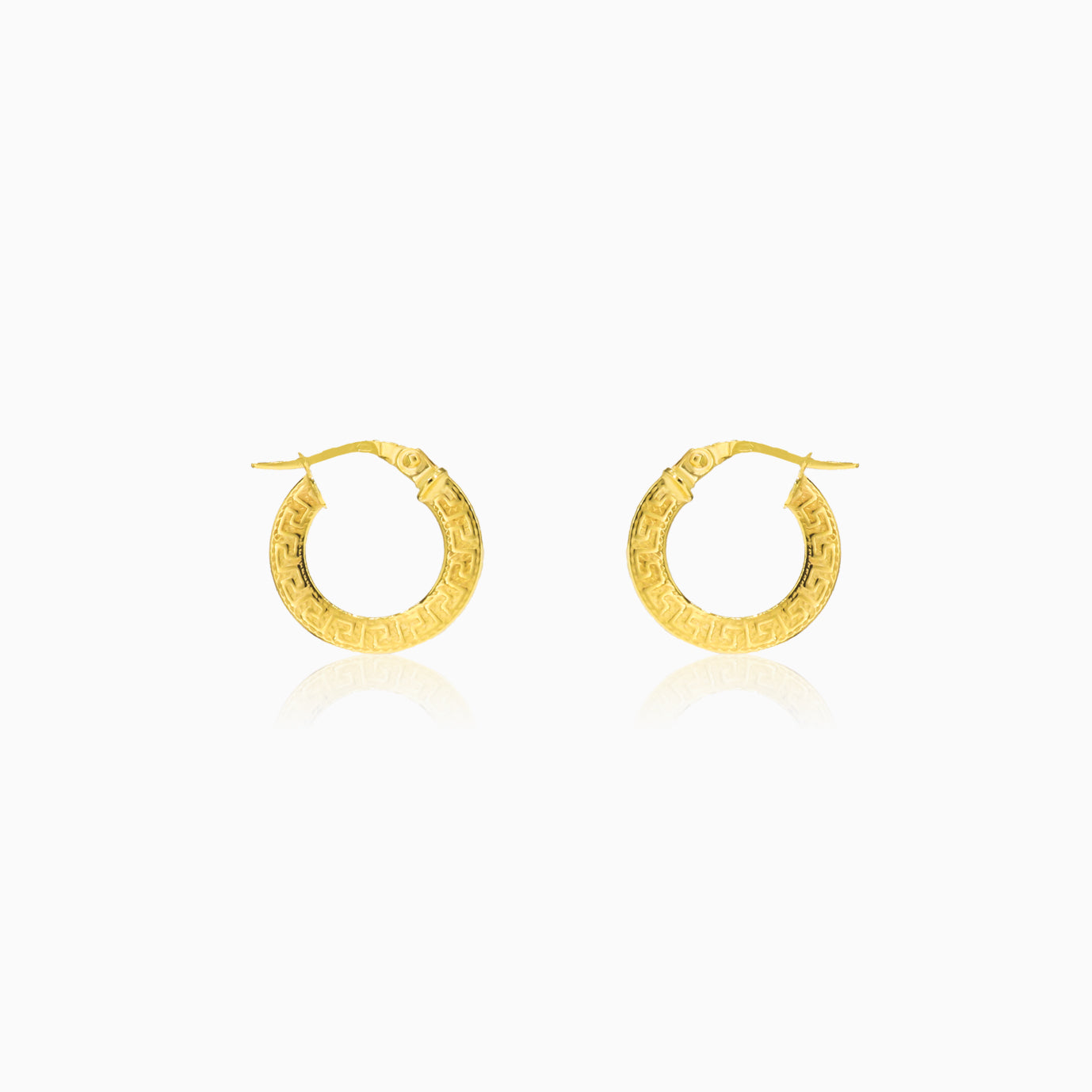 Sublimez votre look quotidien avec ces petites boucles d’oreilles créoles sophistiquées en or jaune 14 carats, ornées d’un magnifique motif grec.