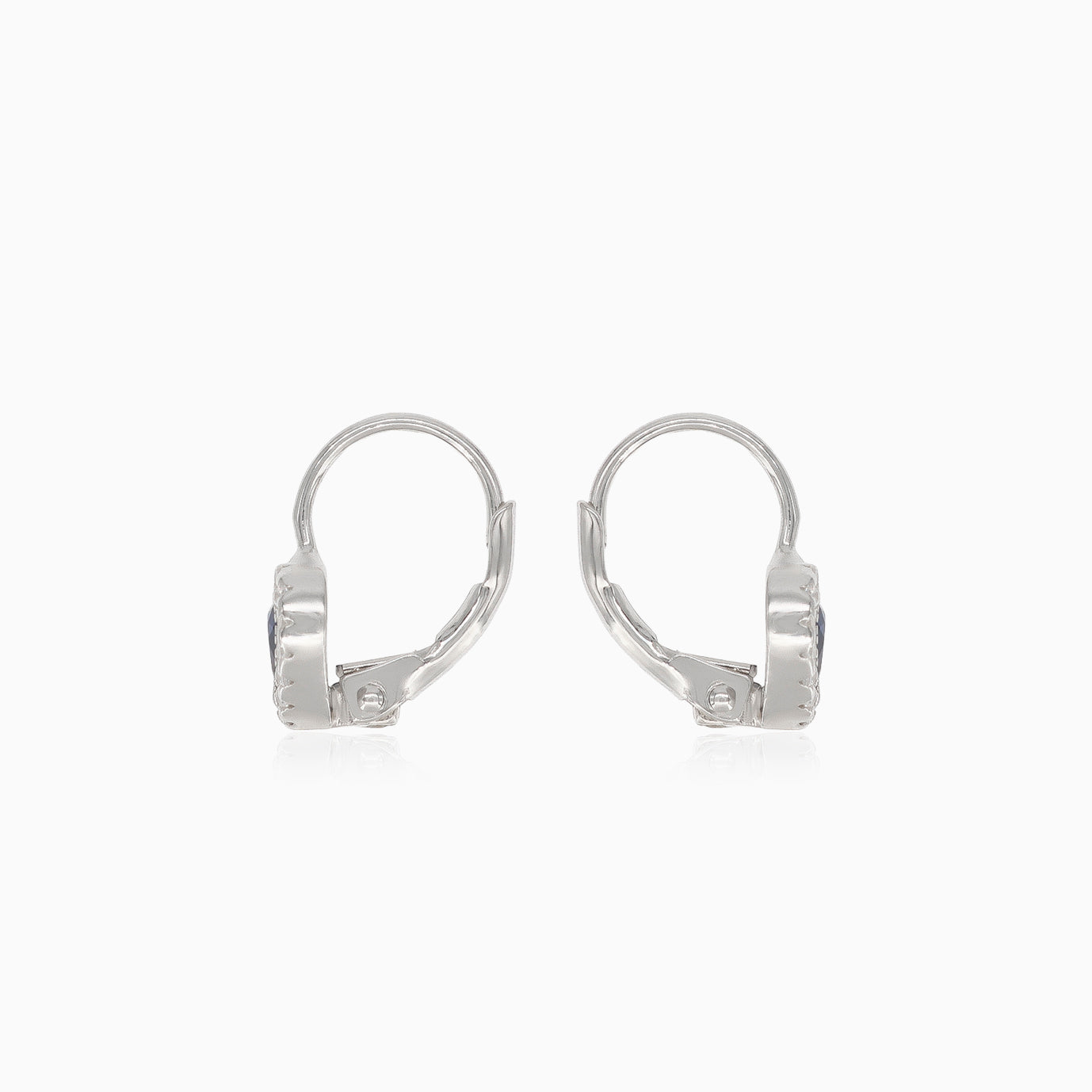 Élégantes boucles d’oreilles pendantes cœur en argent, ornées de saphir synthétique et d’accents scintillants de zircons cubiques.