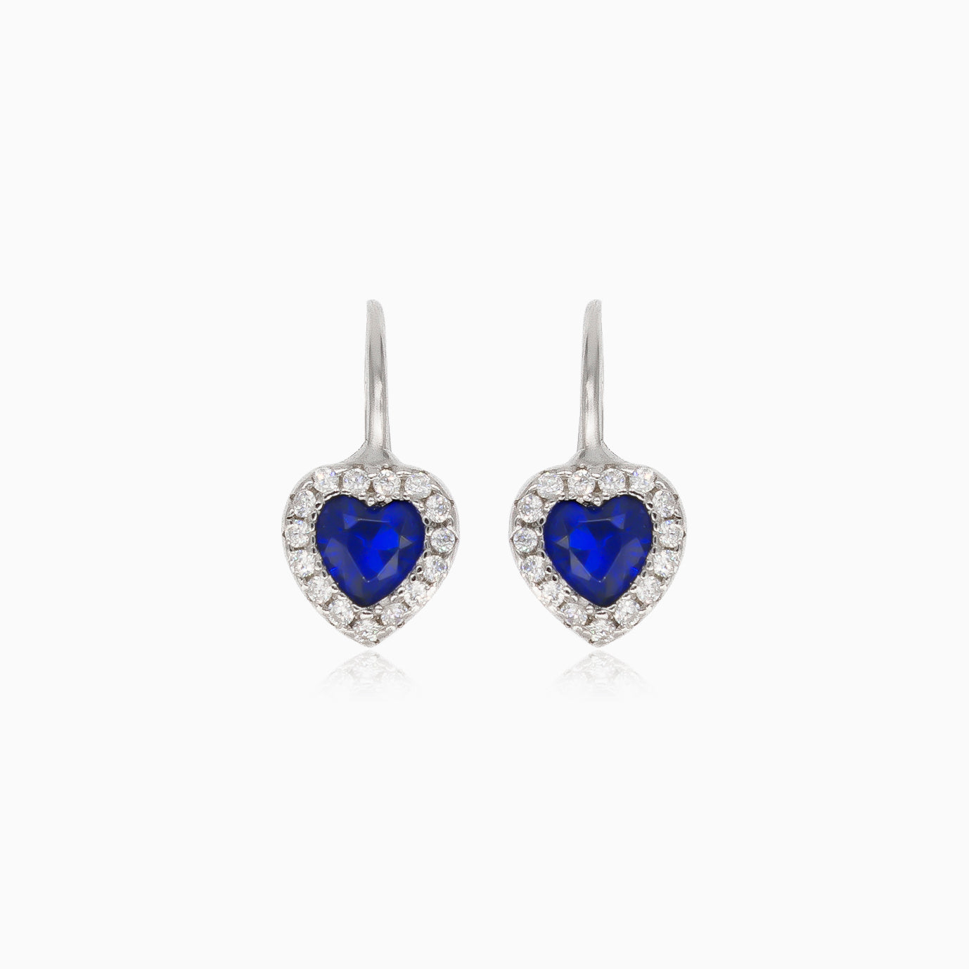 Boucles d’oreilles pendantes cœur en argent avec saphir synthétique