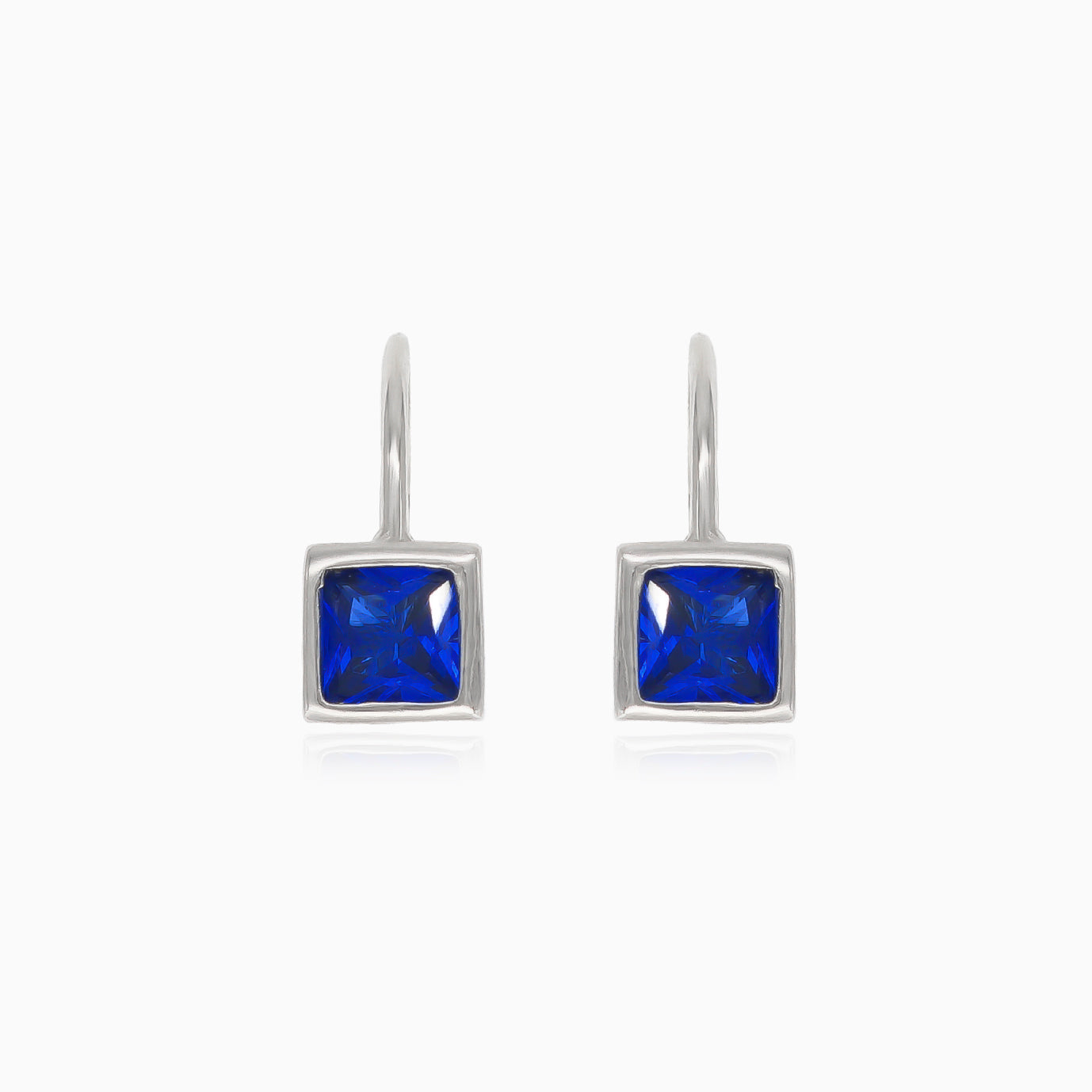 Sublimez votre style avec nos boucles d’oreilles pendantes en argent, mettant en valeur un saphir synthétique taille princesse carrée. Serties en pavé et dotées de fermoirs à levier, ces boucles d’oreilles allient chic et sophistication.