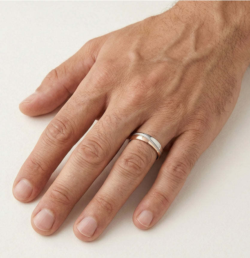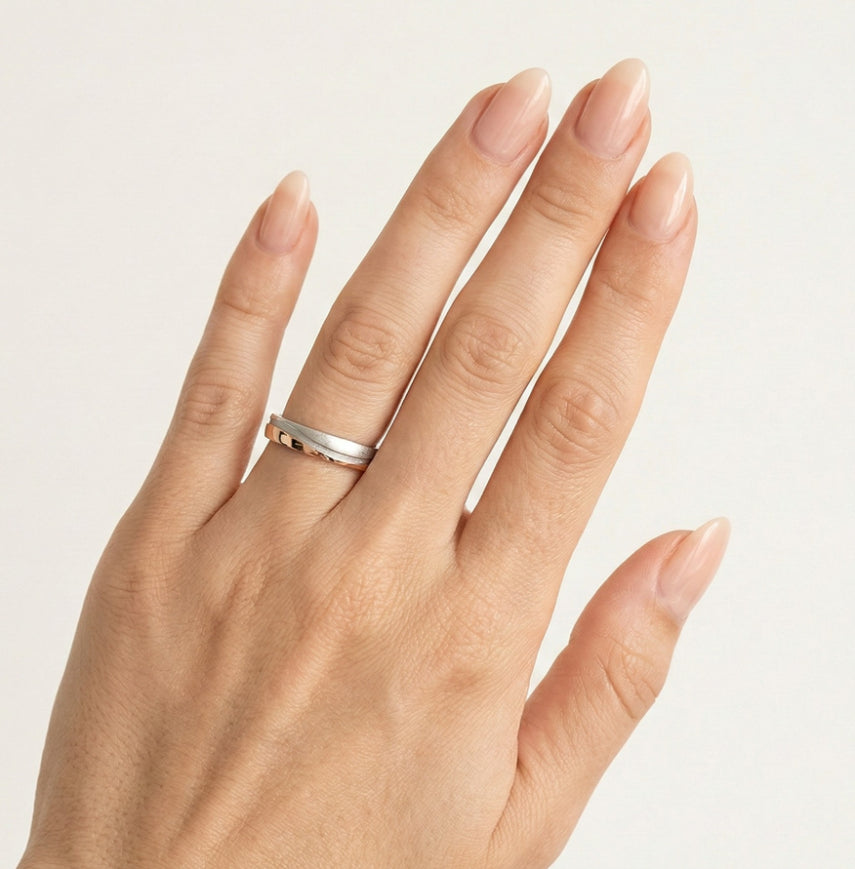 Alliance élégante en or blanc et rose