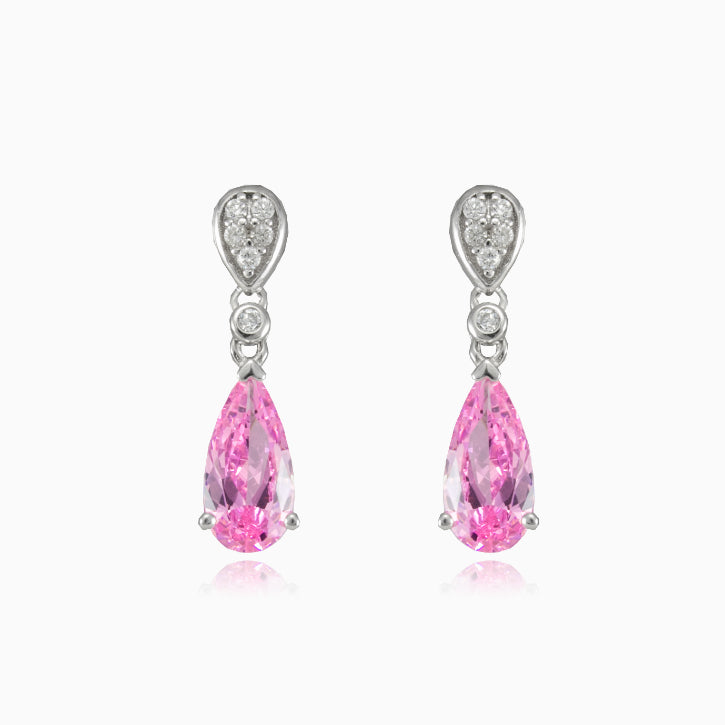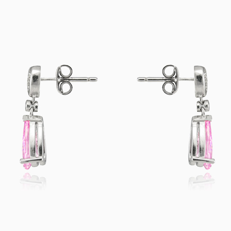 Boucles d’oreilles pendantes en argent sterling pour femme, ornées de quartz rose taille poire allongée et décorées de zircones cubiques sur le dessus.