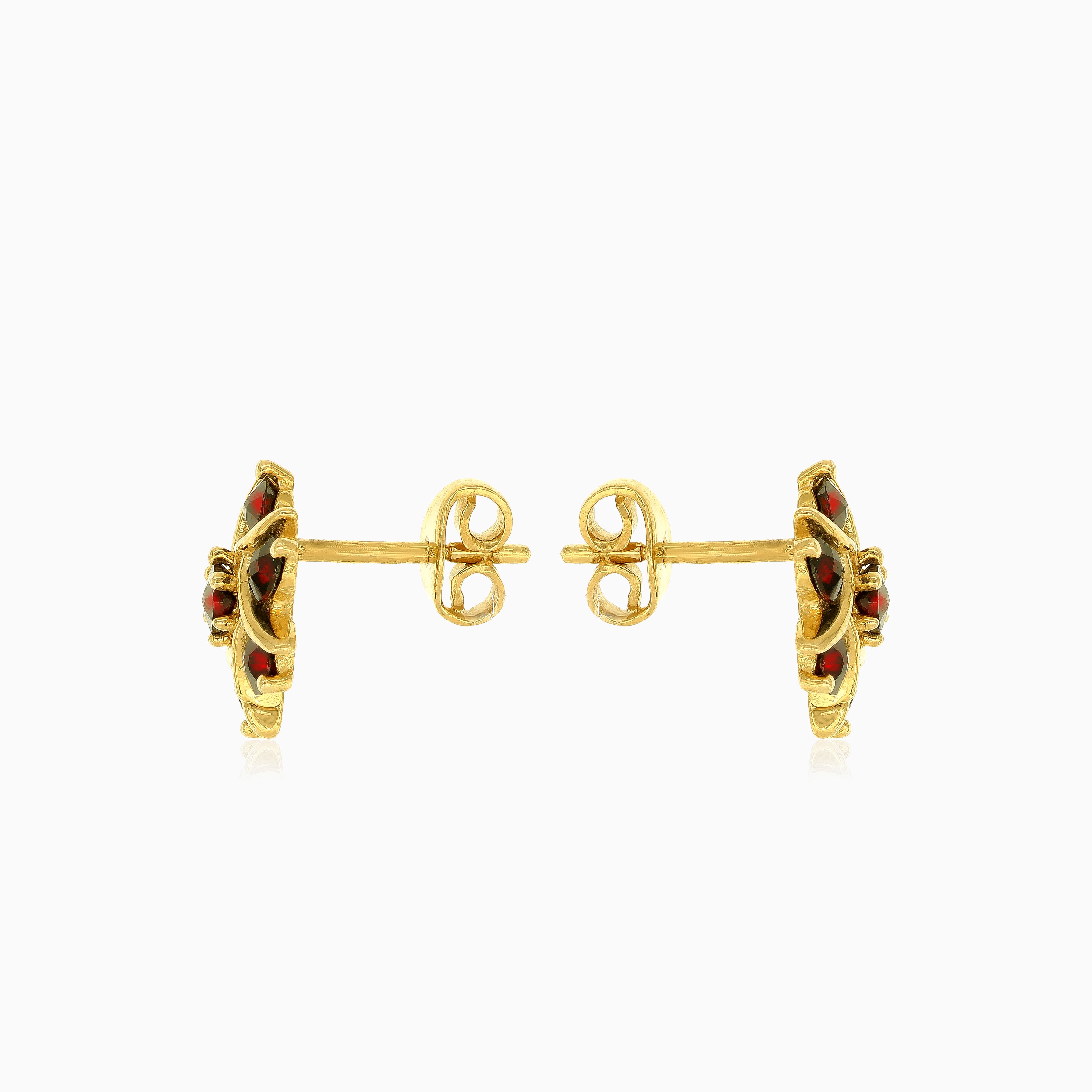 Sublimez votre style avec ces magnifiques boucles d’oreilles pour femmes, ornées d’un grenat vibrant à facettes fines rondes, serti en griffes partagées, avec un fermoir poussette, fabriquées en or jaune 14 carats et dotées d’un superbe motif floral.