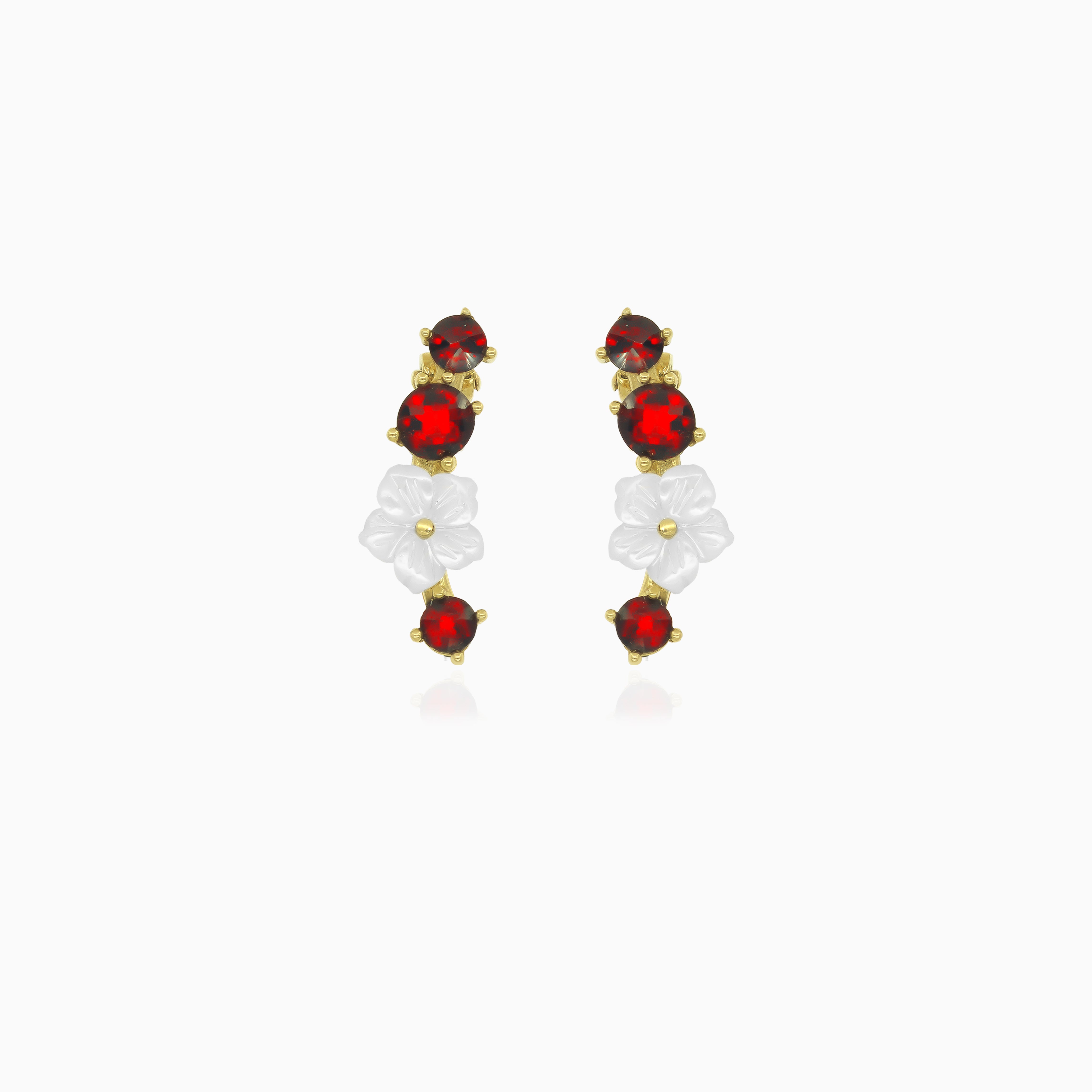 Sublimez votre style avec ces boucles d'oreilles pendantes captivantes pour femme, ornées de grenat et quartz rose taille ronde à facettes fines, sertis dans une monture à griffes en or jaune 14 carats et sécurisées par un fermoir à cliquet.