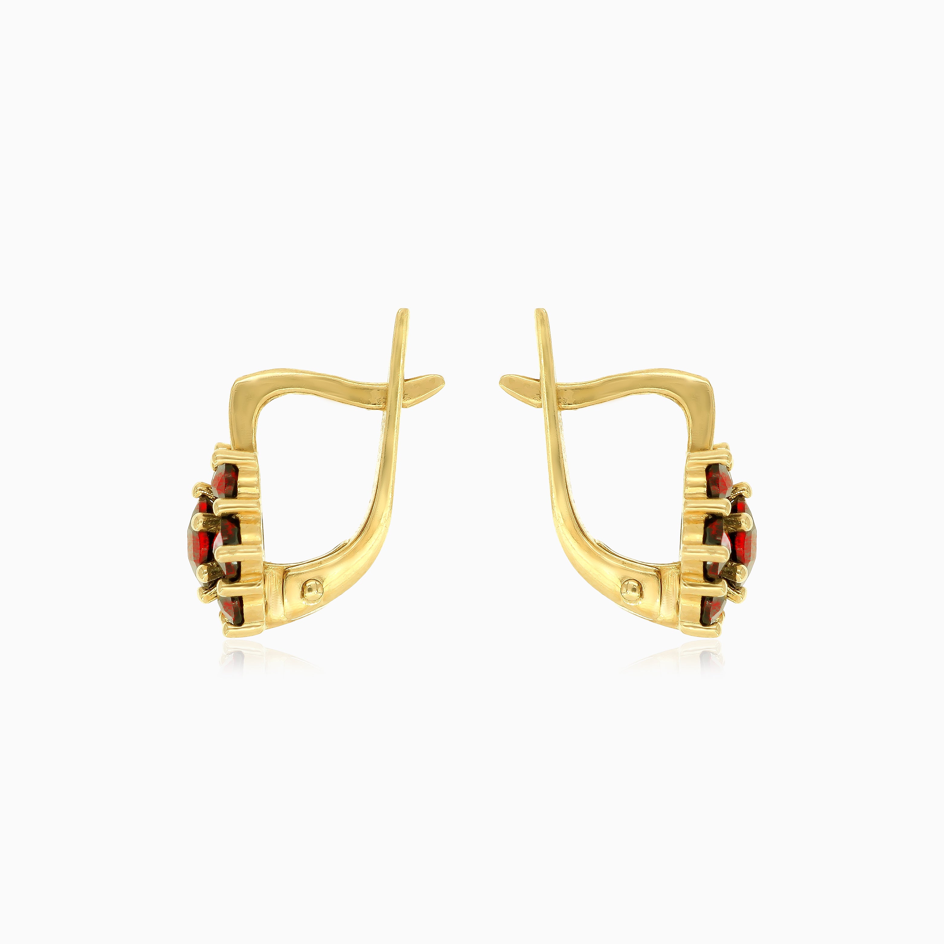 Boucles d'oreilles pendantes à motif floral avec grenat.