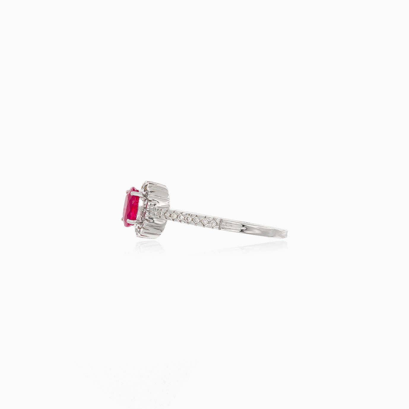 Bague en or blanc avec rubis et halo de diamants
