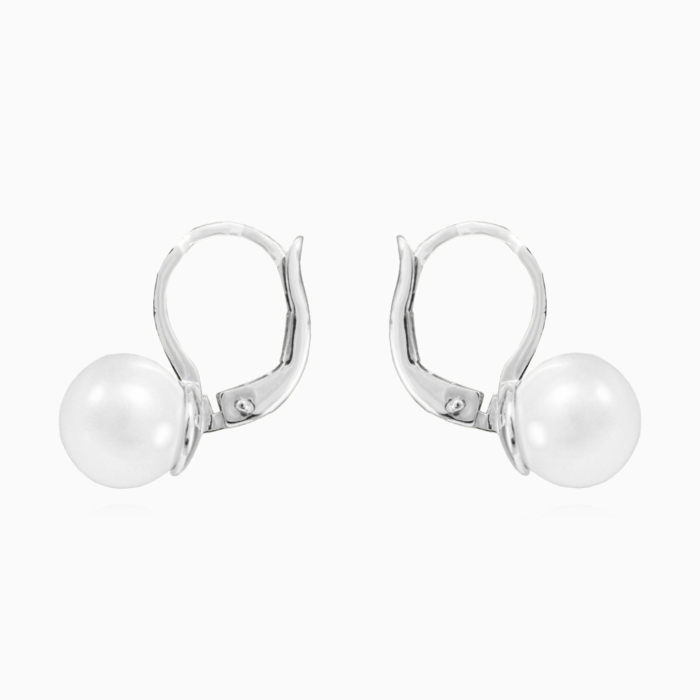 Boucles d’oreilles pendantes classiques avec perles en or blanc
