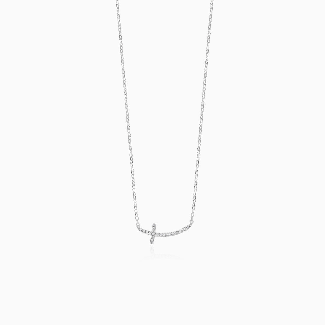 Sublimez votre style avec ce collier croix incurvée en argent sterling. Orné de zircons cubiques ronds taillés à degrés fins et sertis griffes, il dégage une élégance intemporelle. Équipé d’un fermoir à anneau ressort, ce collier est parfait pour un port quotidien ou les occasions spéciales.