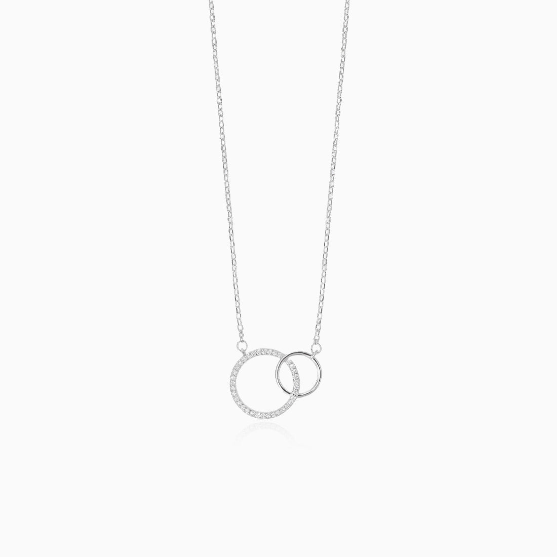 Élégant et intemporel, ce collier chaîne en argent sterling pour femme présente deux cercles entrelacés ornés de pierres en oxyde de zirconium en taille brillant rond. Le serti griffes met en valeur leur éclat, tandis que le fermoir anneau à ressort sécurisé assure un port confortable, parfait pour toutes les occasions.