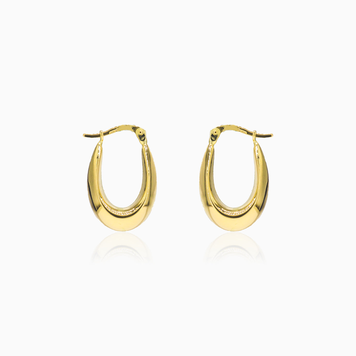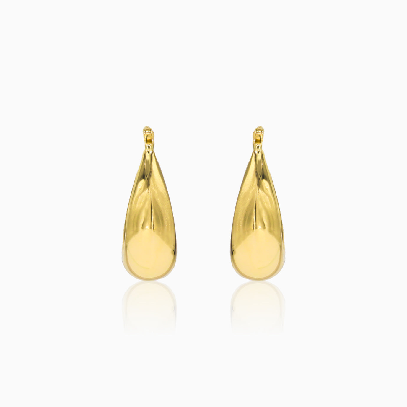 Ces élégantes créoles arborent une forme ovale en goutte et sont fabriquées en or jaune 14 carats à la finition polie. Leur design classique en fait un ajout intemporel à toute collection de bijoux.