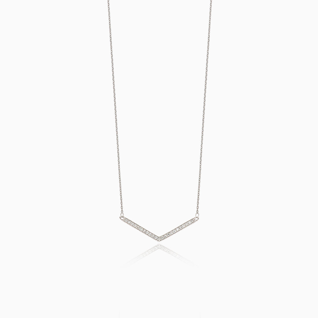 Un magnifique collier en or blanc 18 carats en forme de V orné de diamants VS G de 0,06 ct. Équipé d'un fermoir à pince de homard fiable.