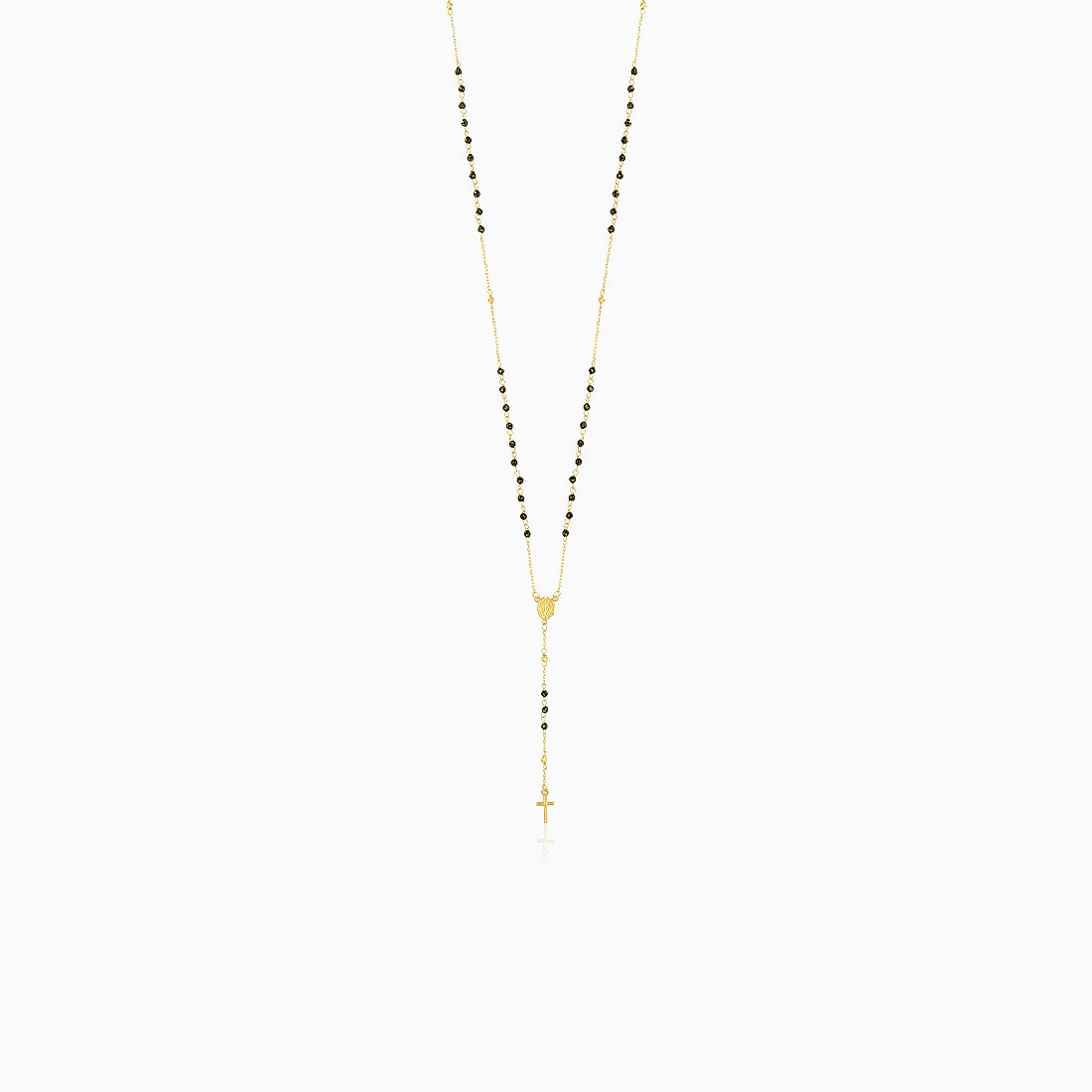 Sublimez votre style spirituel avec ce magnifique collier chapelet en or jaune 14 carats. Orné de perles d’onyx noir taillées en rond à facettes fines, il est équipé d’un fermoir à anneau ressort, symbole de foi et de style.