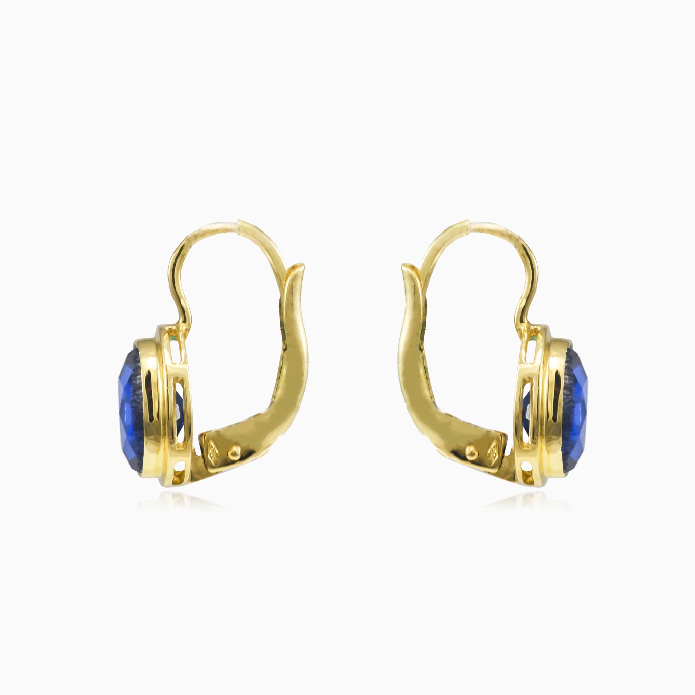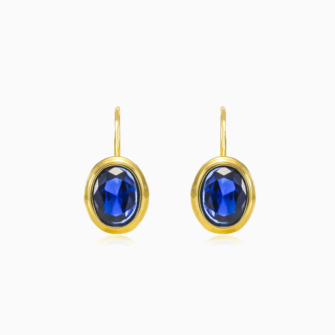 Boucles d’oreilles classiques en or jaune 14 carats avec quartz bleu ovale serti en chaton.