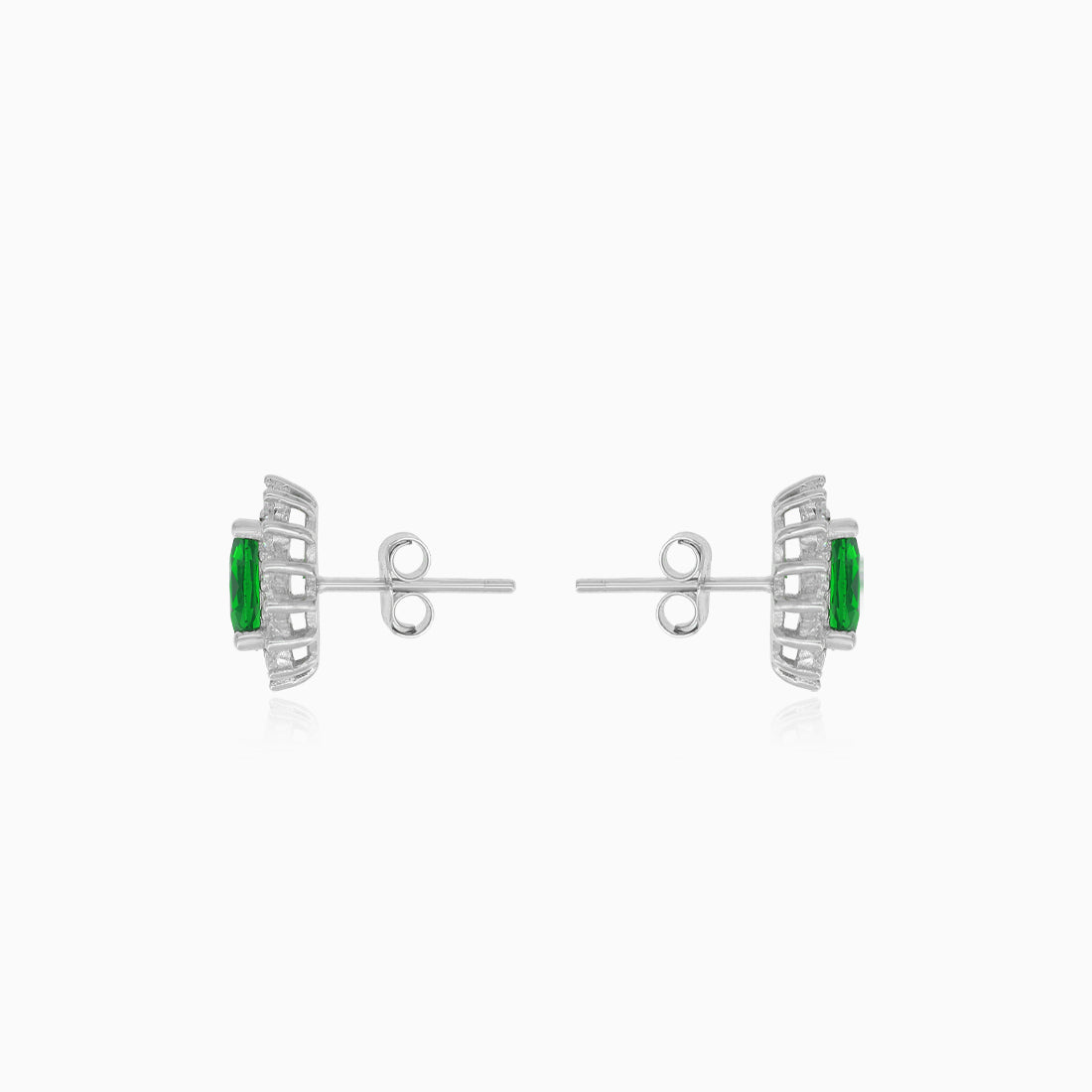 Boucles d’oreilles clous en argent sterling avec halo d’émeraude.