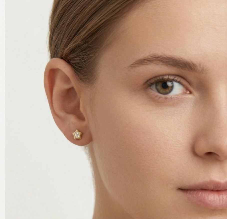 Boucles d’oreilles enfants en or jaune avec étoile en zircone cubique