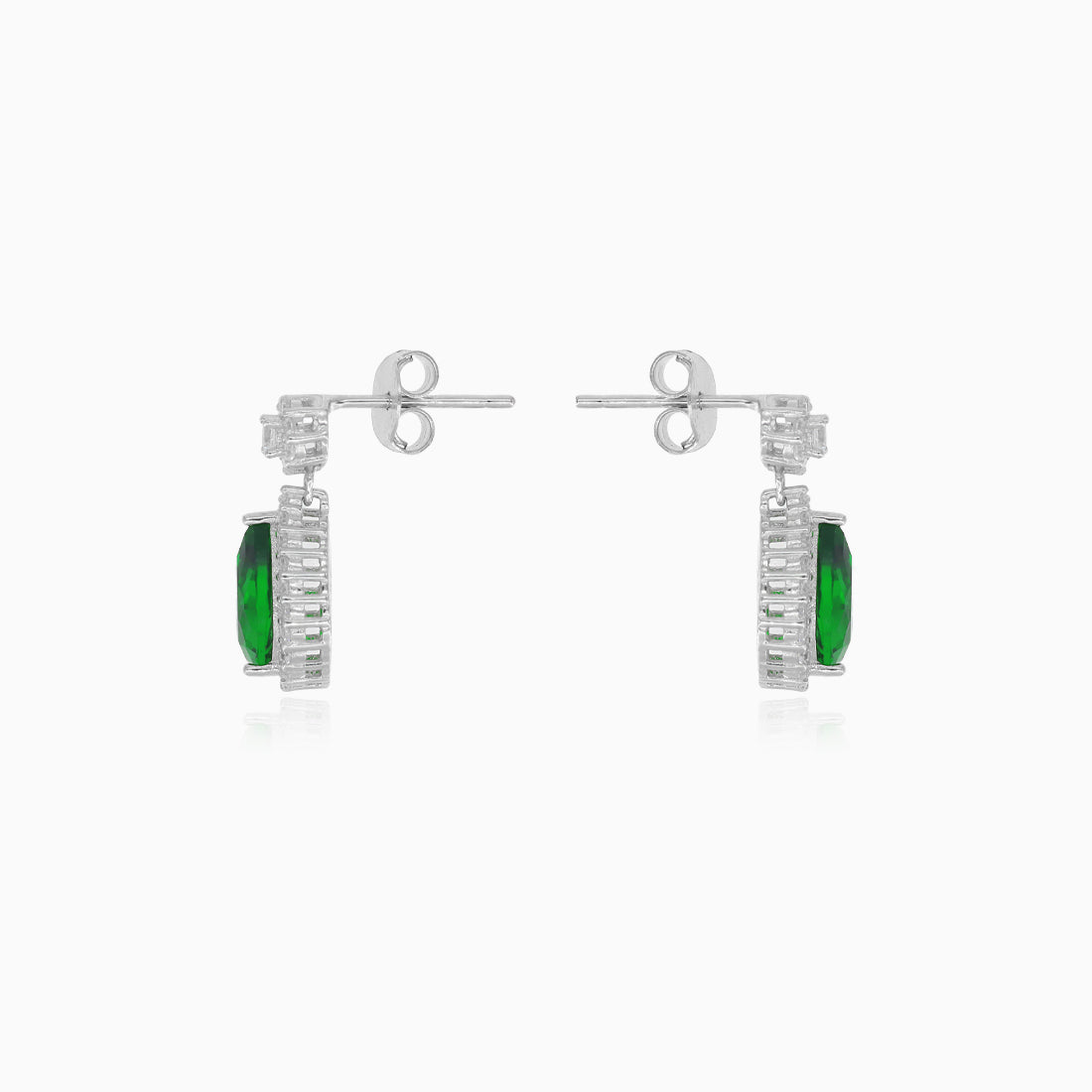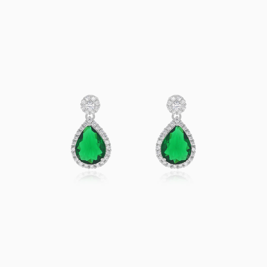 Boucles d'oreilles pendantes élégantes en argent sterling, mettant en valeur des émeraudes synthétiques taillées en poire, entourées de zircones cubiques taillées en rond. Le sertissage à griffes garantit l'éclat, tandis que le fermoir poussette assure un maintien sécurisé. Parfaites pour les occasions formelles ou pour ajouter une touche de glamour à n'importe quelle tenue.
