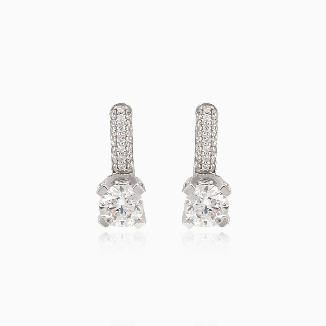 Confectionnées en or blanc 14 carats, ces boucles d’oreilles exquises brillent de 1,06 carat de diamants de couleur G et de pureté SI. Elles présentent un diamant central dominant en sertissage à 4 griffes, complété par de plus petits diamants au-dessus, et se ferment avec un fermoir à cliquet français. Une pièce qui incarne le luxe pour les amateurs de bijoux exigeants.