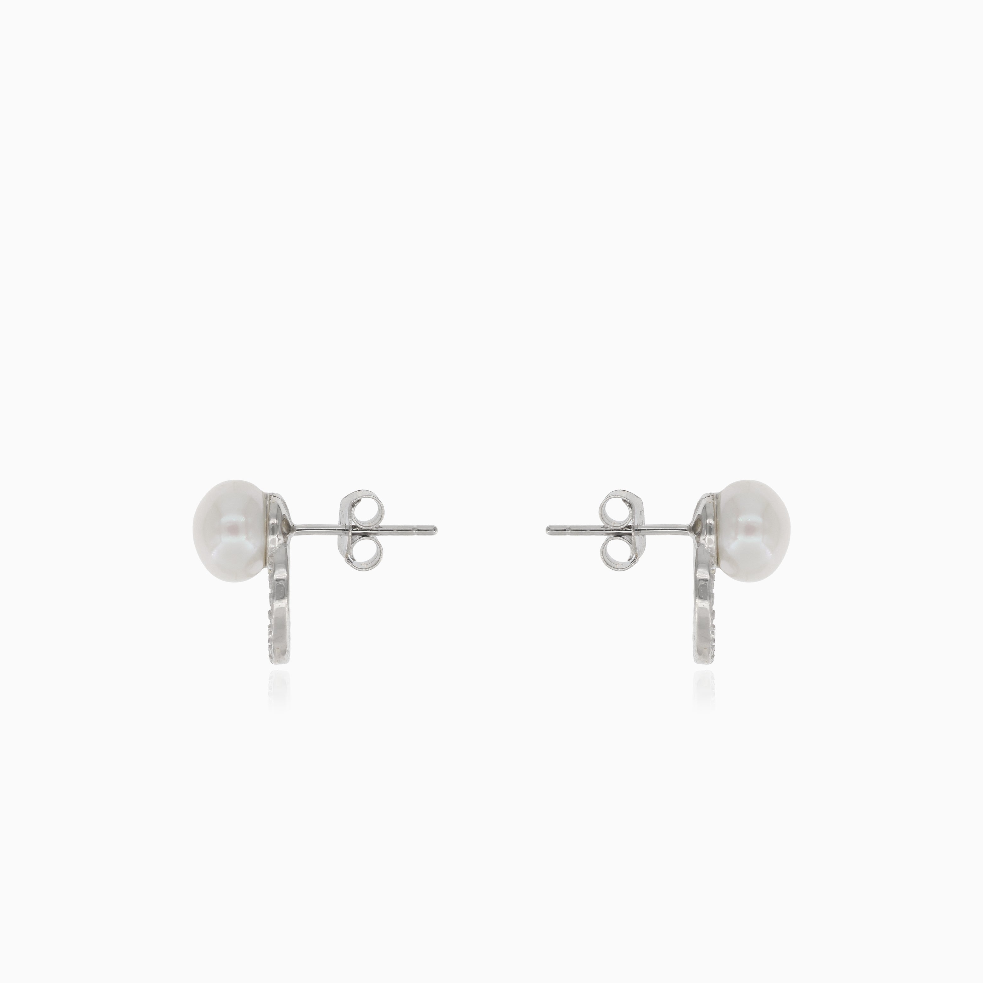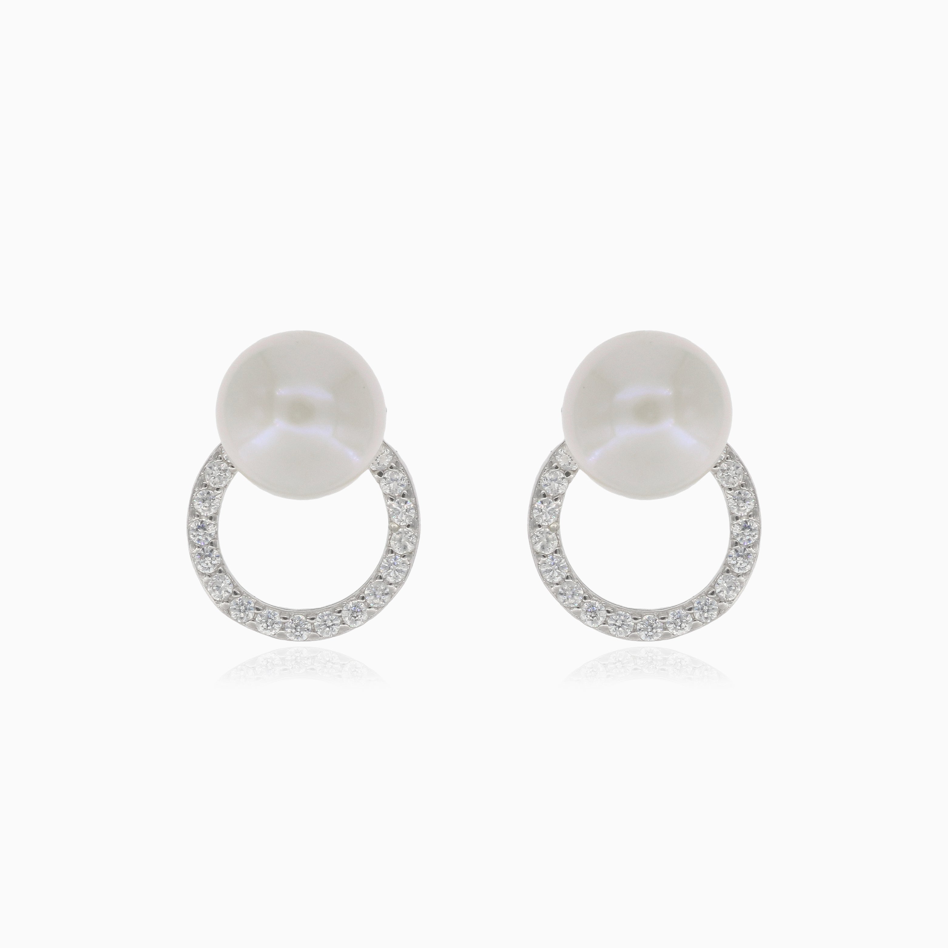 Boucles d'oreilles en argent avec perle et cercle en zirconium cubique