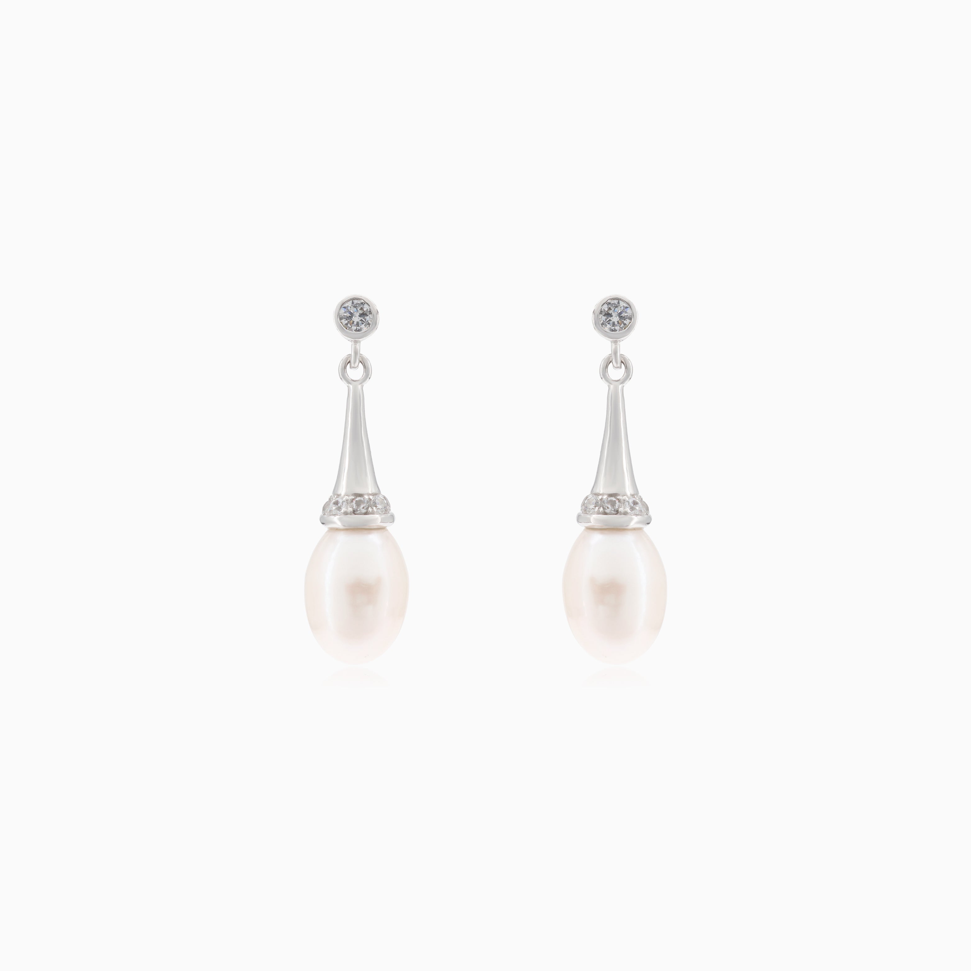 Ajoutez une touche de glamour à votre look avec ces superbes boucles d'oreilles pendantes en argent, mettant en valeur une perle nacrée et des accents de zirconium cubique scintillant, parfaites pour toute occasion spéciale.