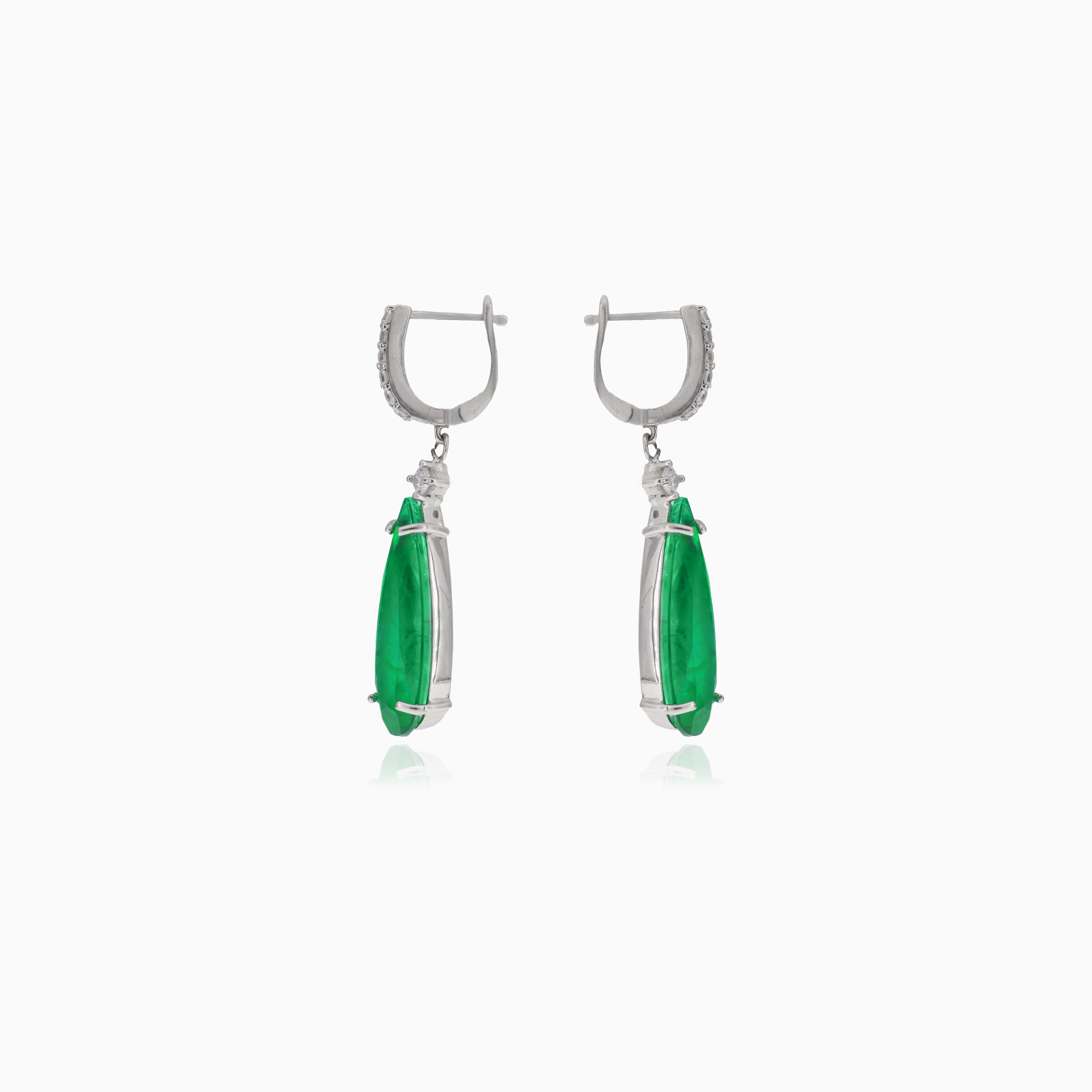 Boucles d’oreilles pendantes en argent avec une goutte d’émeraude synthétique