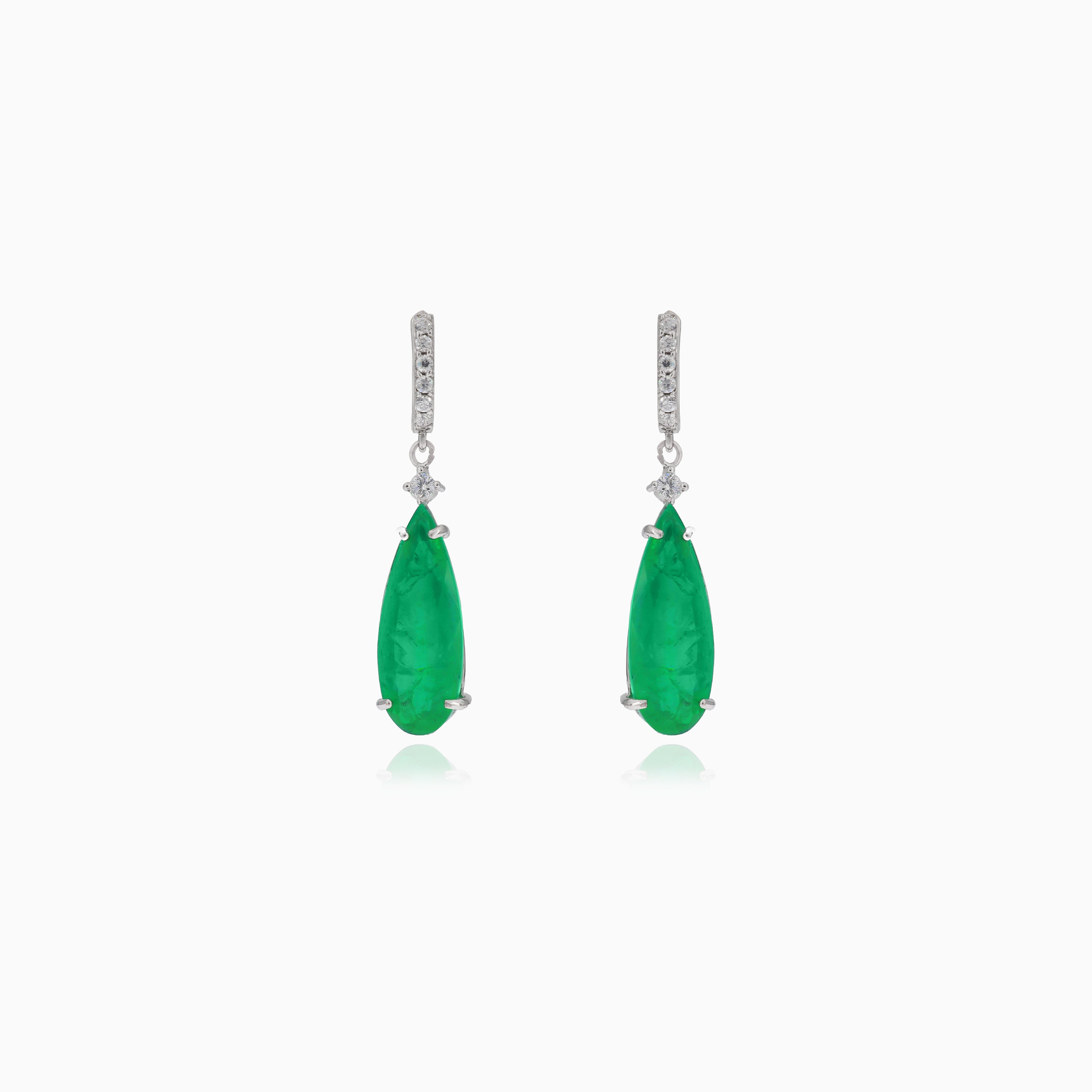Sublimez votre style avec ces boucles d’oreilles pendantes en argent, présentant une goutte captivante d’émeraude synthétique et des zircones cubiques, pour une allure sophistiquée et élégante.
